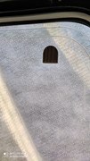 La pieza de plástico es la que te comento para la ventana,tienes que hacer un orificio mayor y simplemente ponerla justa a presión,por otro lado la cinta que ves es la guarnitas para la junta de las ventanas que venden a metros y en la foto de la ventana por el exterior es la goma "tapa tornillo" que son para tola la perfilería de las ventanas y el portalón trasero