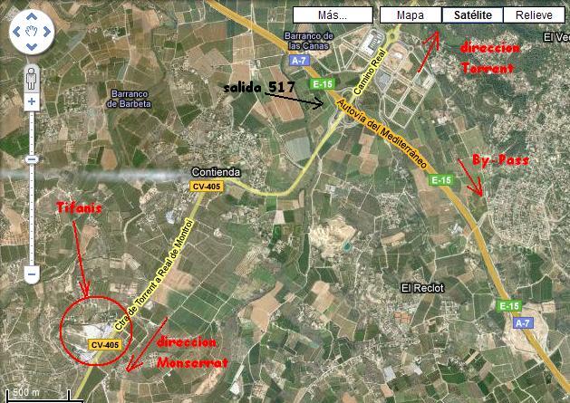 CV-405 Carretera de Torrent a Montserrat, km 6 o saliendo por la A7 dirección Monserrat