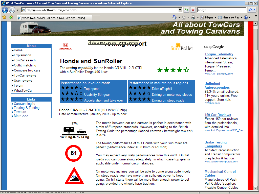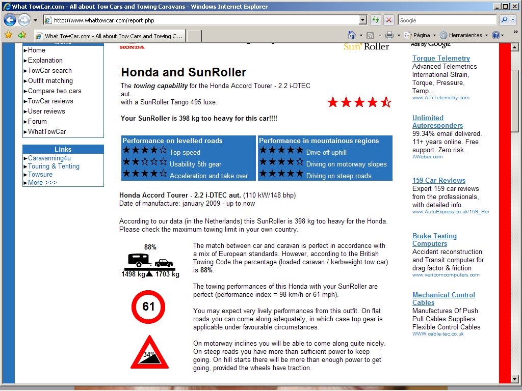 Al hacer la comparativa entre el CRV que tengo actualmente y el Accord en la pagina de http://www.whattowcar.com me dan los siguientes resultados (no se copiar la pagina como imagen):