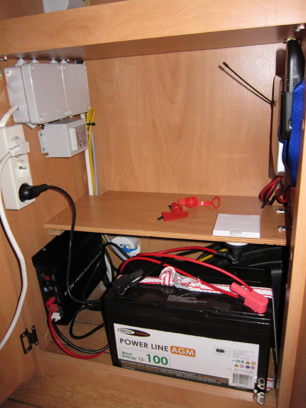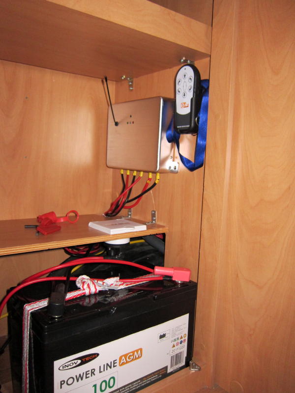 No tengo el gusto de conocer ese modelo en directo, pero posiblemente ese armario ropero en la parte de abajo, pudira alojar la bateria y la centralita,