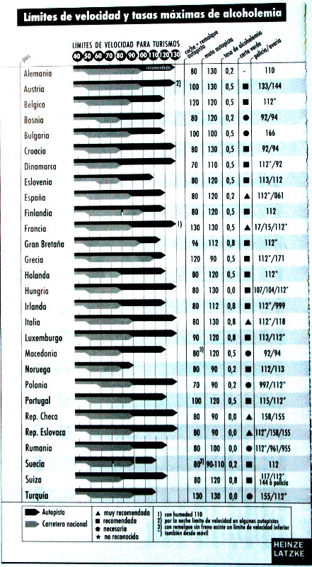 Carretera principal : 110 km/h, en caso de lluvia 100 km/h