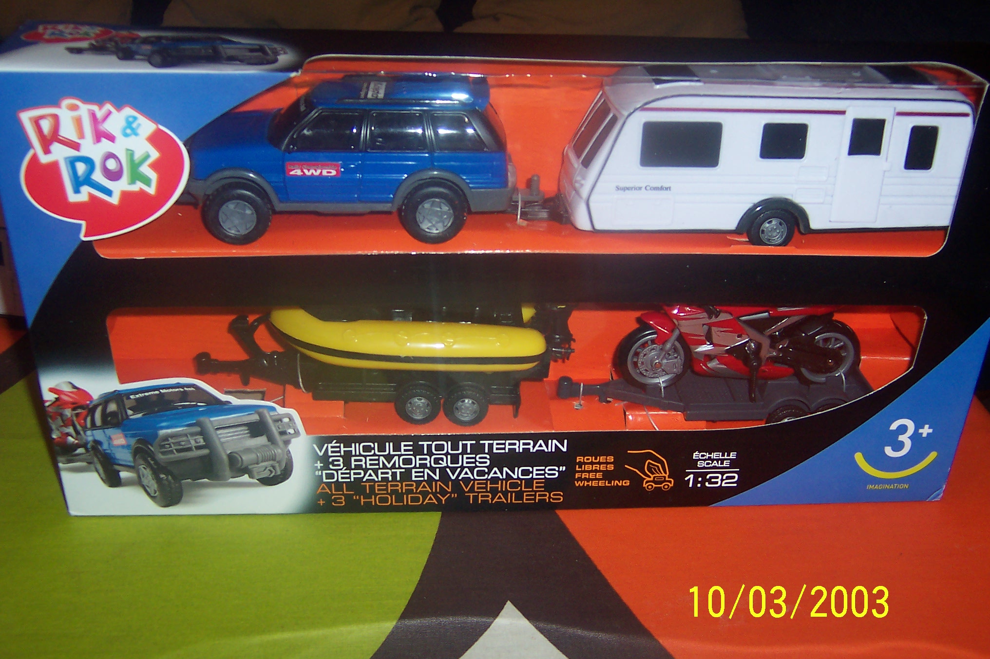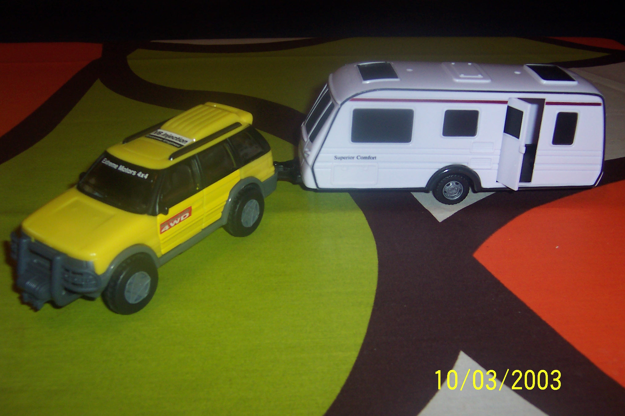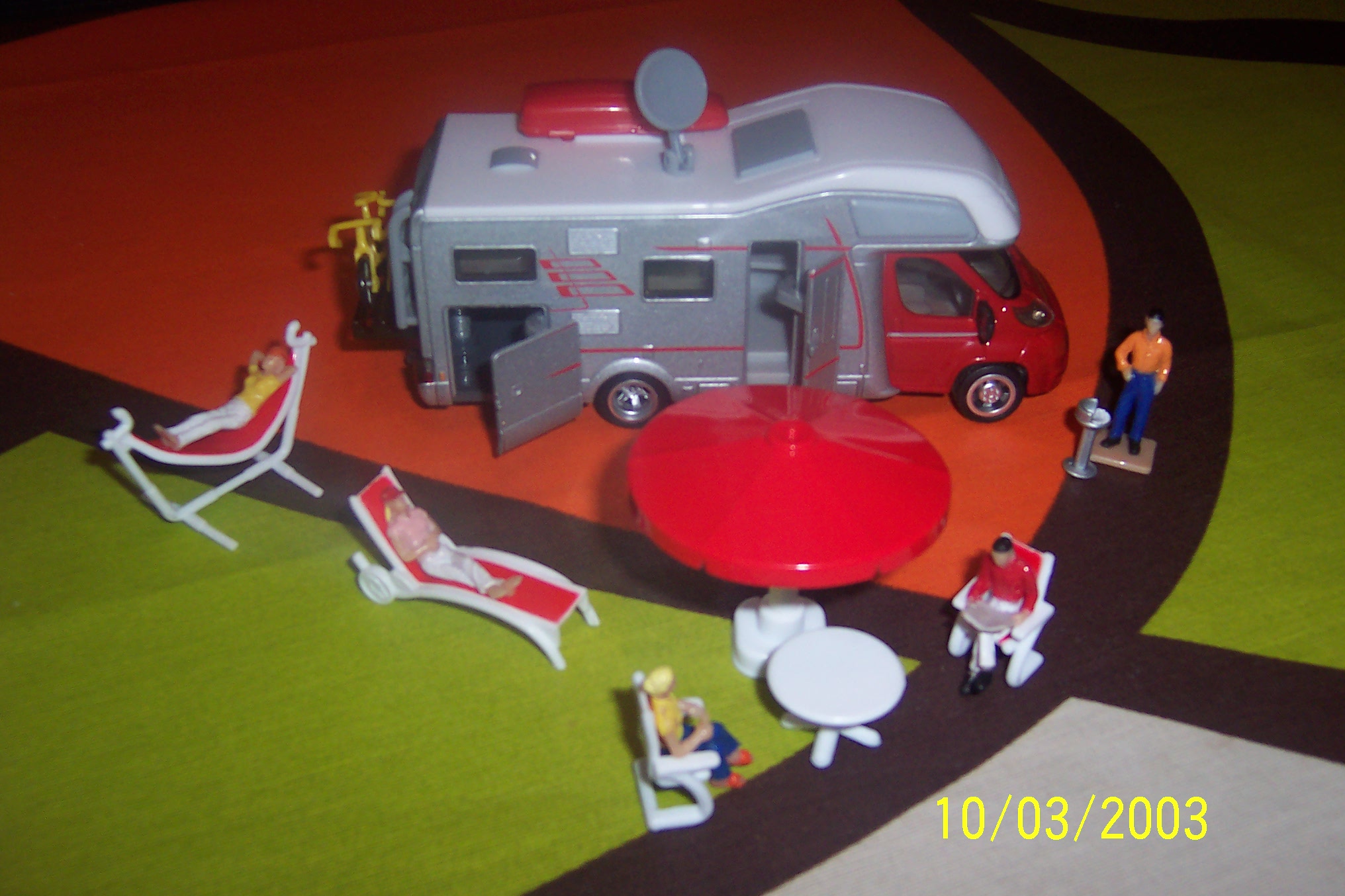 bueno amigos daros prisa que se agota,el conjunto coche todo terreno ,mas 2 remolques,uno con moto y otro con zodiac por 5 aurelios en el alcampo y la autocaravana la he pillado en toys arus         en este he cambiado de vehiculo tractor que lo encontre en jugueterias poly como la autocv iveco    espero que os guste salu2