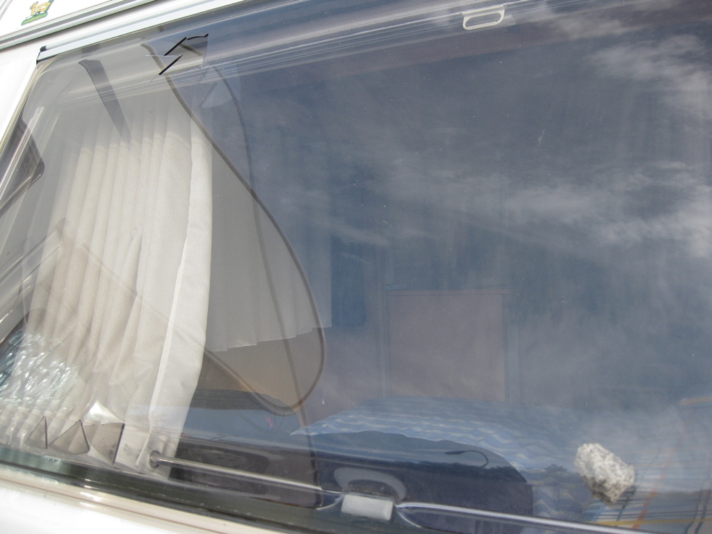 Pues nada una pedrada de algun gamberro, solo daños materiales, ya di parte al seguro y la ventana esta encargada a Roller para cambiarla lo antes posible pues comenzamos las vacaciones el 10 de Julio, sola queria compartirlo con vosotros, que cuando menos lo esperas salta la liebre la broma casi 400 euros