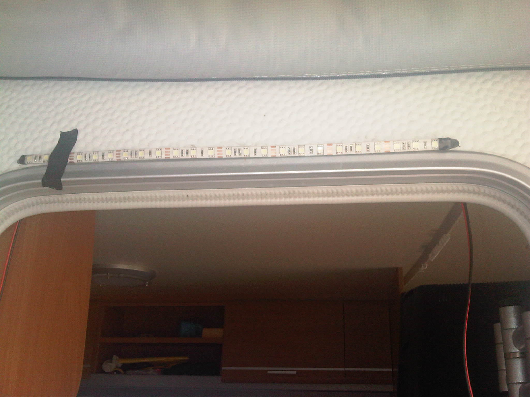 la corriente esta cogida de la misma luz del avance (12 v) y luego todos van unidos, esta tira, se puede cortar y soldar cada tres leds, con lo cual no es ir nada mas que poniendo y uniendo, con agujeros en la cv para ir pasando los cables por dentro