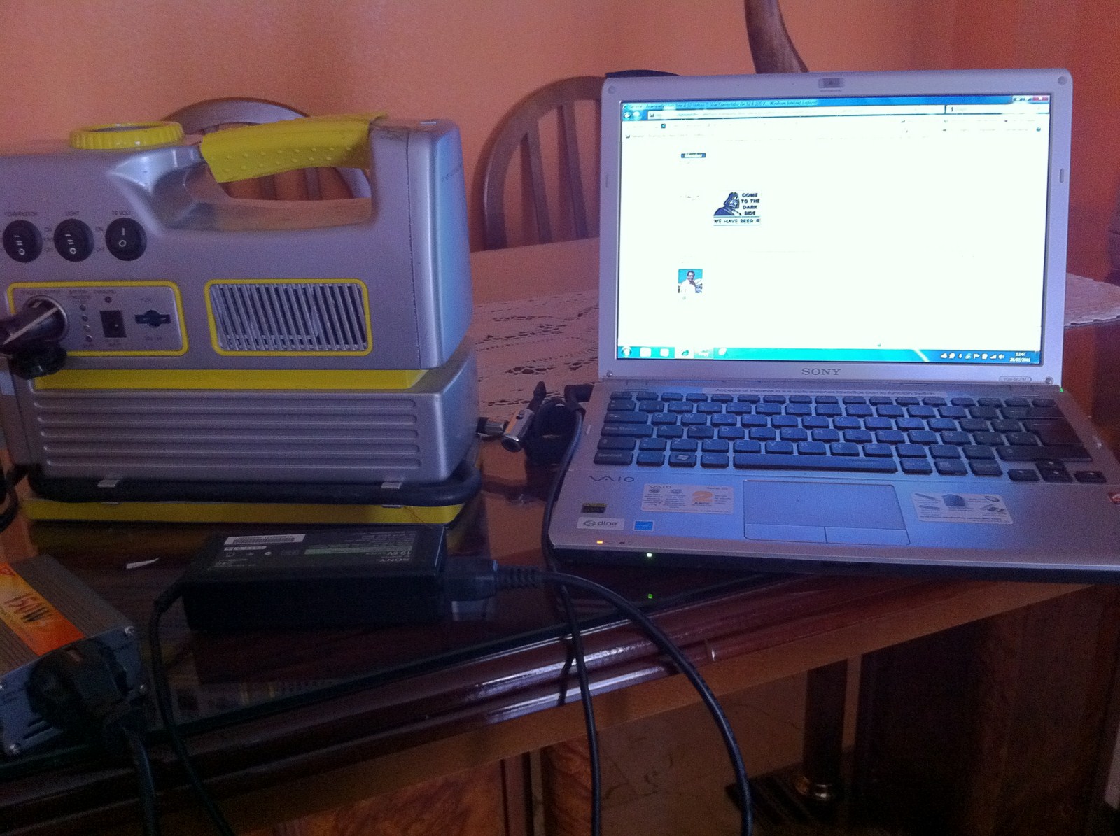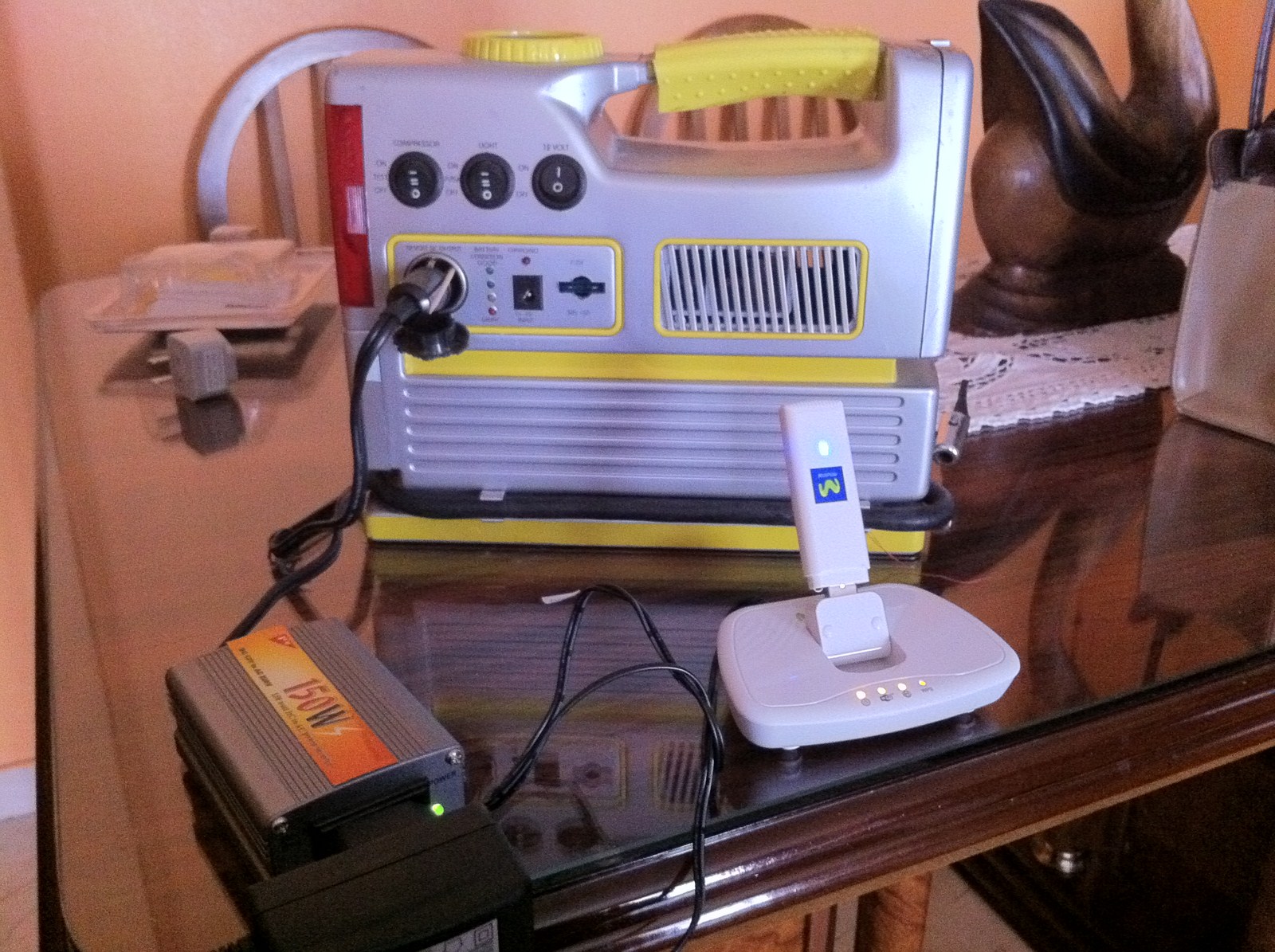 eahh he hecho algunas pruebas con el inversor y la bateria que tengo del compresor de aire, primero he enchufado cosa de poca potencia una base wifi con el modem usb.....funciona!!!