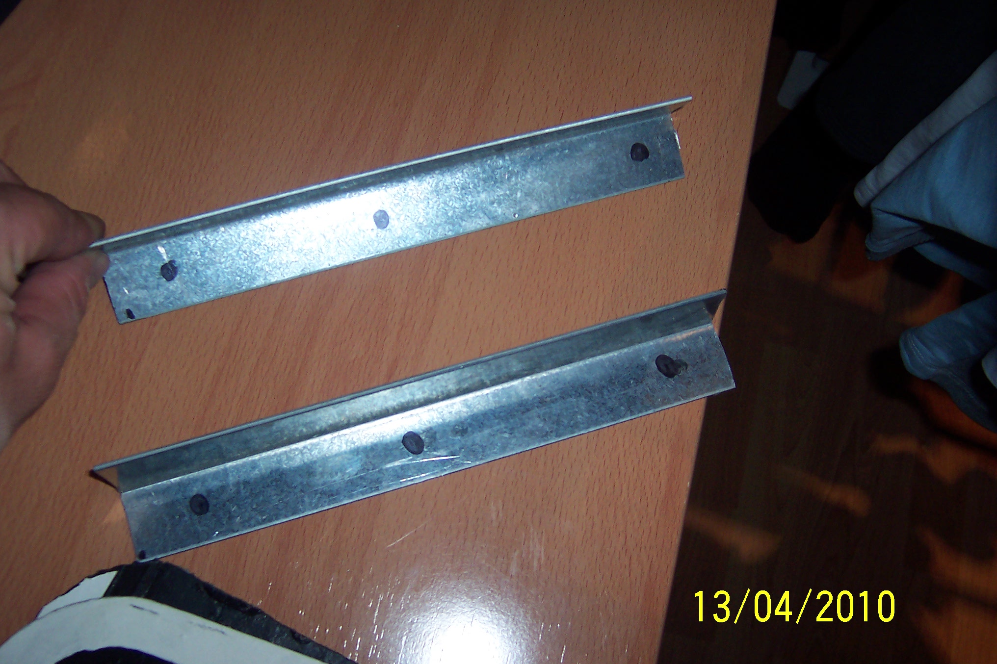 mas tarde me hice con esteprfil de acero galvanizado y lo corte a la  medida de las faldillas y haciendoles los correspondientes taladros