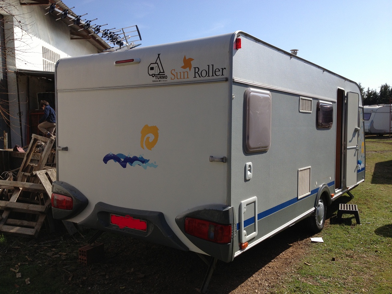 Ademas nos hemos lanzado con un toldo Caravnstore de 410. Con la caravana venia un avance o dos... no lo se. Ya que hay un lio de palos y sacos de aupa. 1 palet enterolleno.