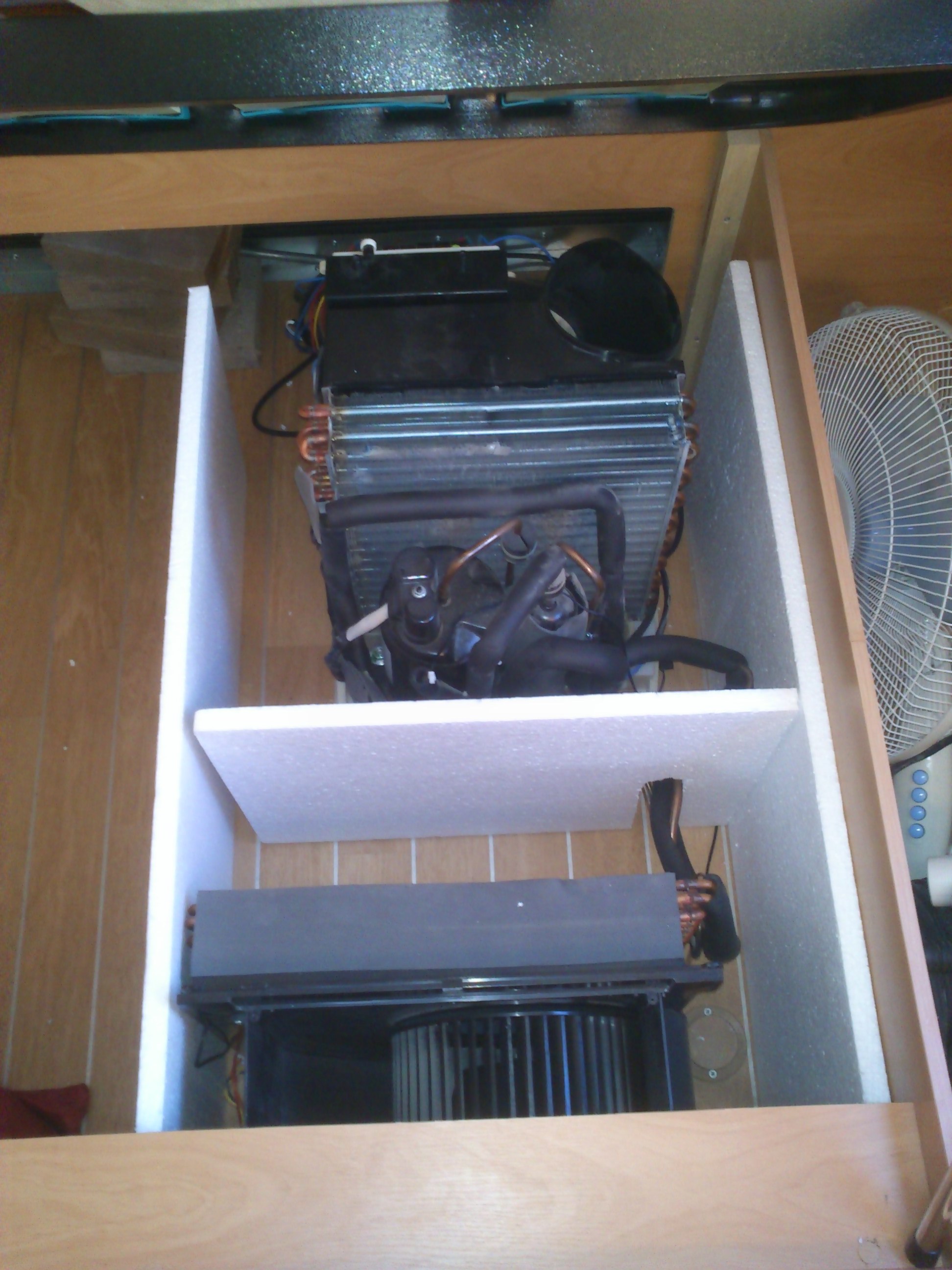 Yo comentearte sobre aires acondicionados portatiles ,que depende mucho de cada persona :yo personalmente si que podia dormir la siesta, no es que sea silencioso ,pero si no eres de sueño ligero te acostumbras ,son 55 dba. Es mas un amigo mio tiene un dometic 2200 y el nivel sonoro casi casi .Yo el que dispongo es de un orbegozo de 3000 frigorias y de 3100 kilocalorias me costo unos 400 euros, mucho mas barato que un dometic .Aunque entiendo que no es especifico de caravana. Eso si por la noche yo no lo conecto, eso de la brisa del mar me va bien ,y lo que si es el espacio que quita por eso yo me he replanteado a desmontarlo y meterlo debajo del arcon de la cama de matrimonio ( eso si la idea copiada de otro foro pero intentare merojar el rendimiento) os dejo tres fotos del proyecto por que estoy a medias , y si a alguien le interesa ya lo publicaria.