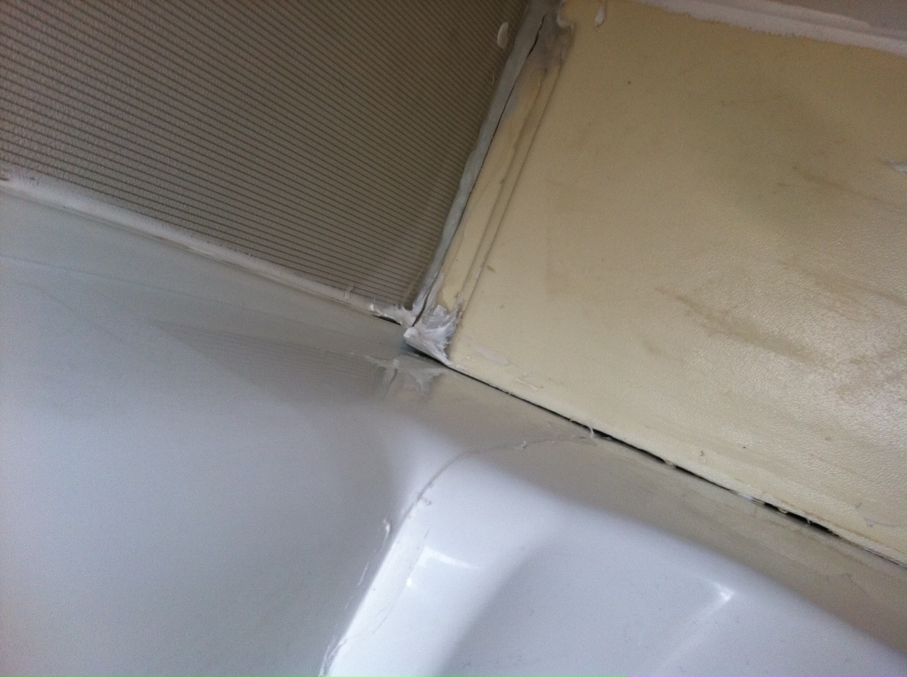 Tanto leer en los foros, decidi mirar si la madera debajo del plastico estaba bien o no... quite la silicona, y lo qe hay son rajas... sigo cortando y debajo de eso veo madera seca y sana... asi qe el agua viene de algun lado de arriba.
