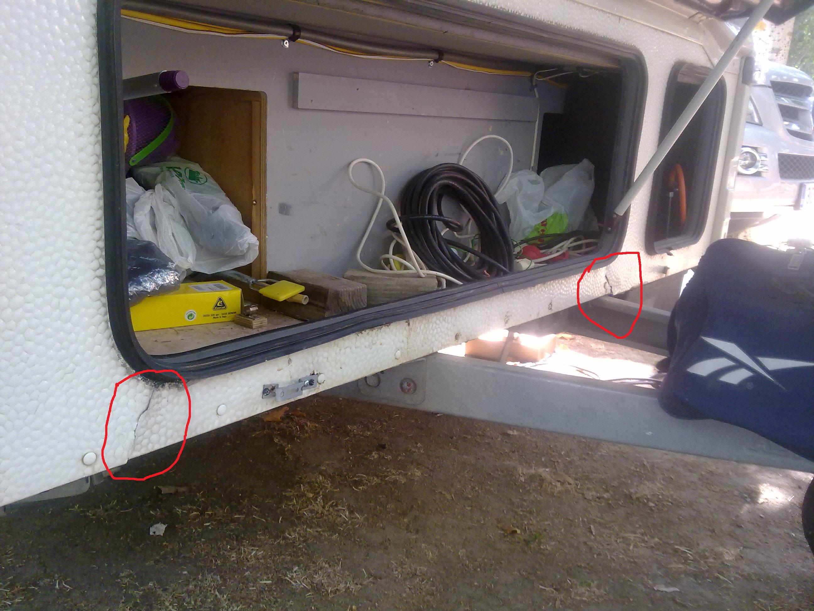 Vaya tela vrscse2, lo que más feo veo es el problema del bajo de la caravana, máxime siendo la zona de apoyo de la pata... ten cuidado en no forzarla en absoluto que puede ceder el suelo...