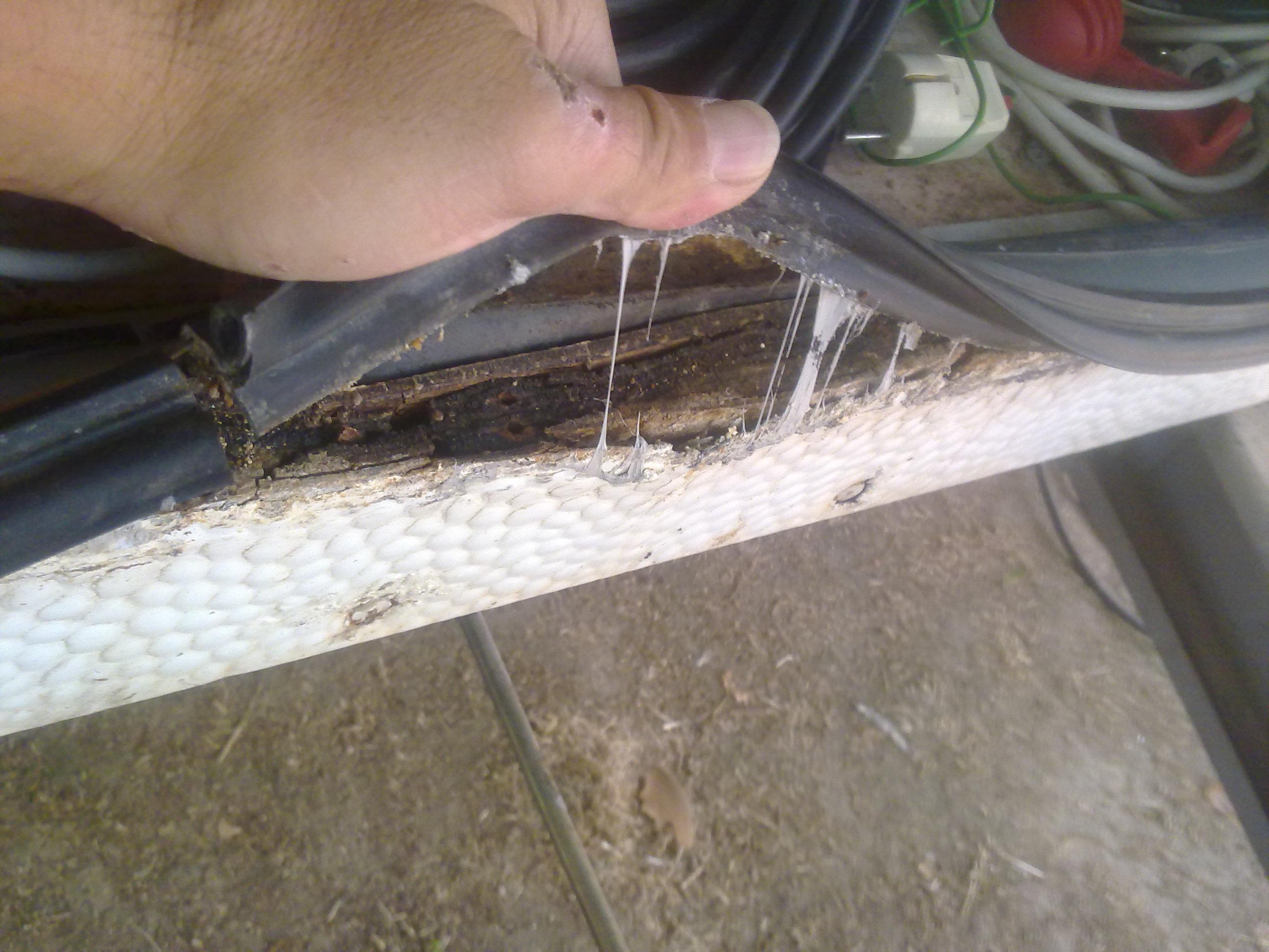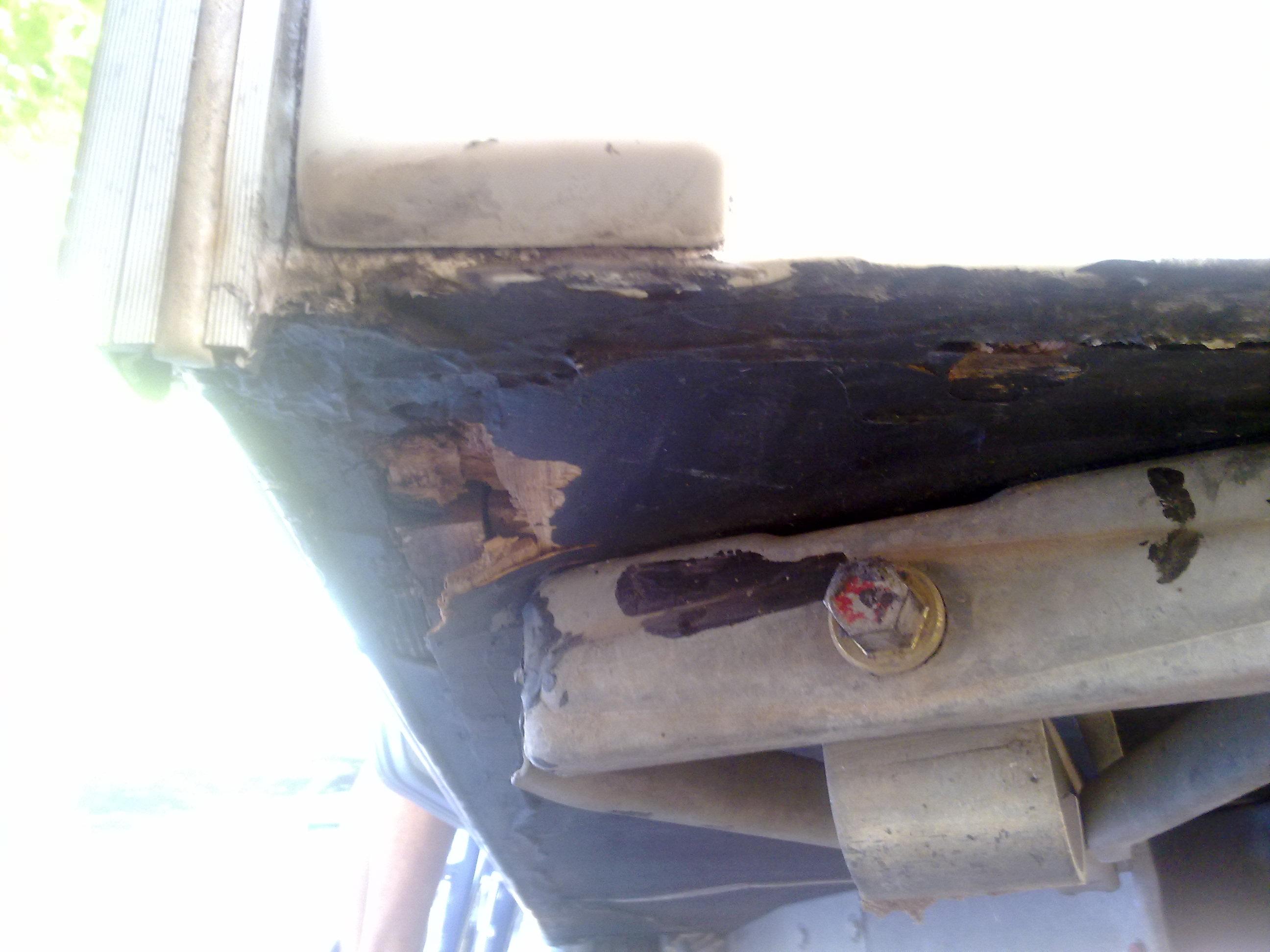 En el viaje de vuelta a casa me he encontrado con unas fisuras en la parte inferior delantera justo debajo del portón de mi Fiesta 47F y revisando todo también me he encontrado con problemas en la parte inferior. He debido de tener una entrada de agua y me a podrido la madera. : :evil:  :evil:  :evil: