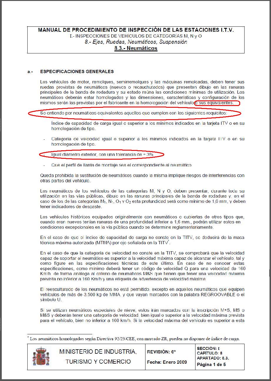 Es decir al menos en la revision 6ª del manuel de las ITV en el 2009 dice que el neumatico puede ser equivalente (inicando ademas que significa equivalente)