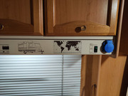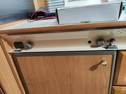 Encontré el manual de la nevera en este bendito internet, y pude echarla a andar sin demasiados problemas. Bueno, en realidad aunque hubo alguno, y es que al pinchar la caravana al coche y arrancar, quise poner la nevera a funcionar a 12v durante el viaje, y no sólo se apaga a unos segundos después, sino que además no me funcionaban ni la luz de gálibo izquierda ni las luces de freno... Por lo que tuve que descartar conectarla y esperamos hasta llegar al camping.