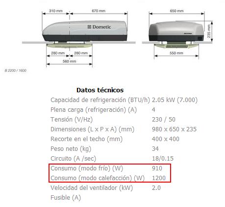 Normalmente todos estos aparatos consumen lo mismo; en calor un poco más pero un camping no es una casa y con 5,45 A que consume en calor lo que tienes que hacer es no gastar en otros aparatos, y te queda un poco para el alumbrado, aunque no sé lo que gasta la nevera (aunque se podría poner a gas).
