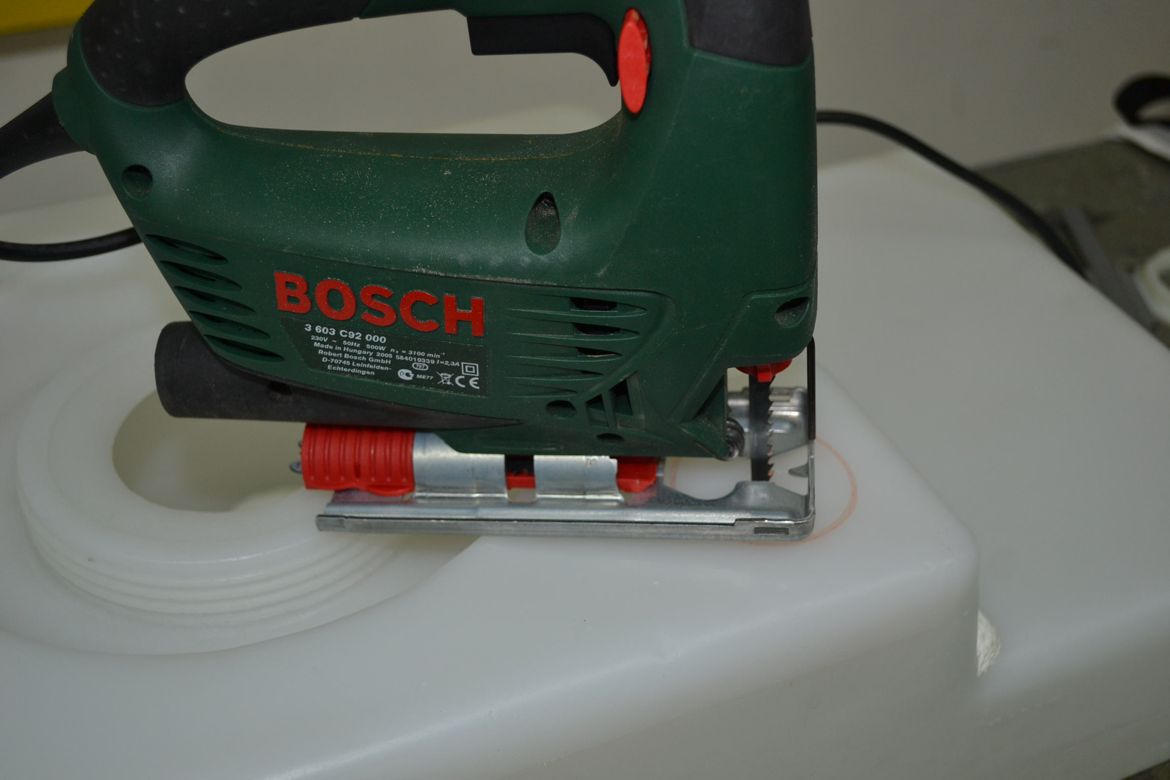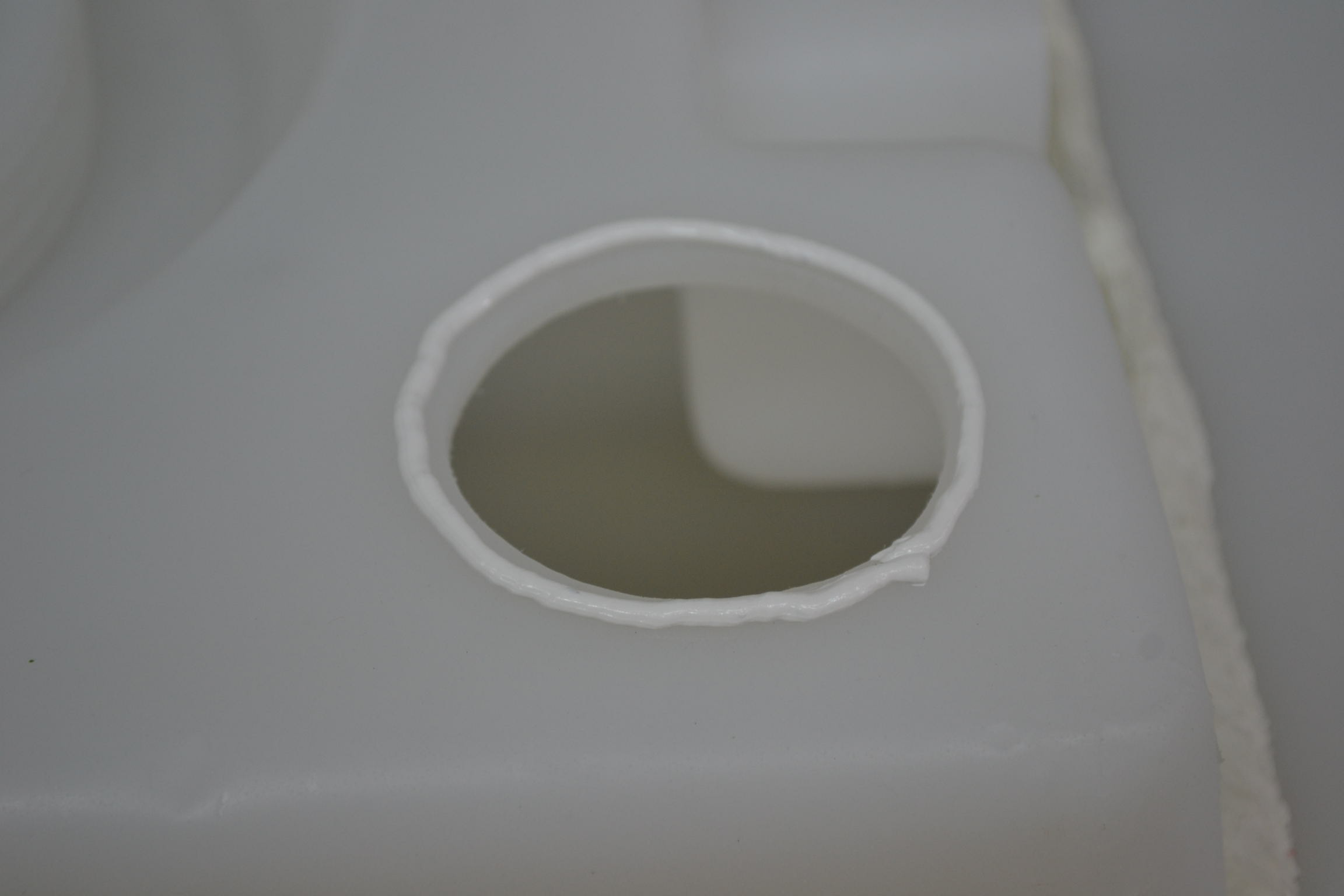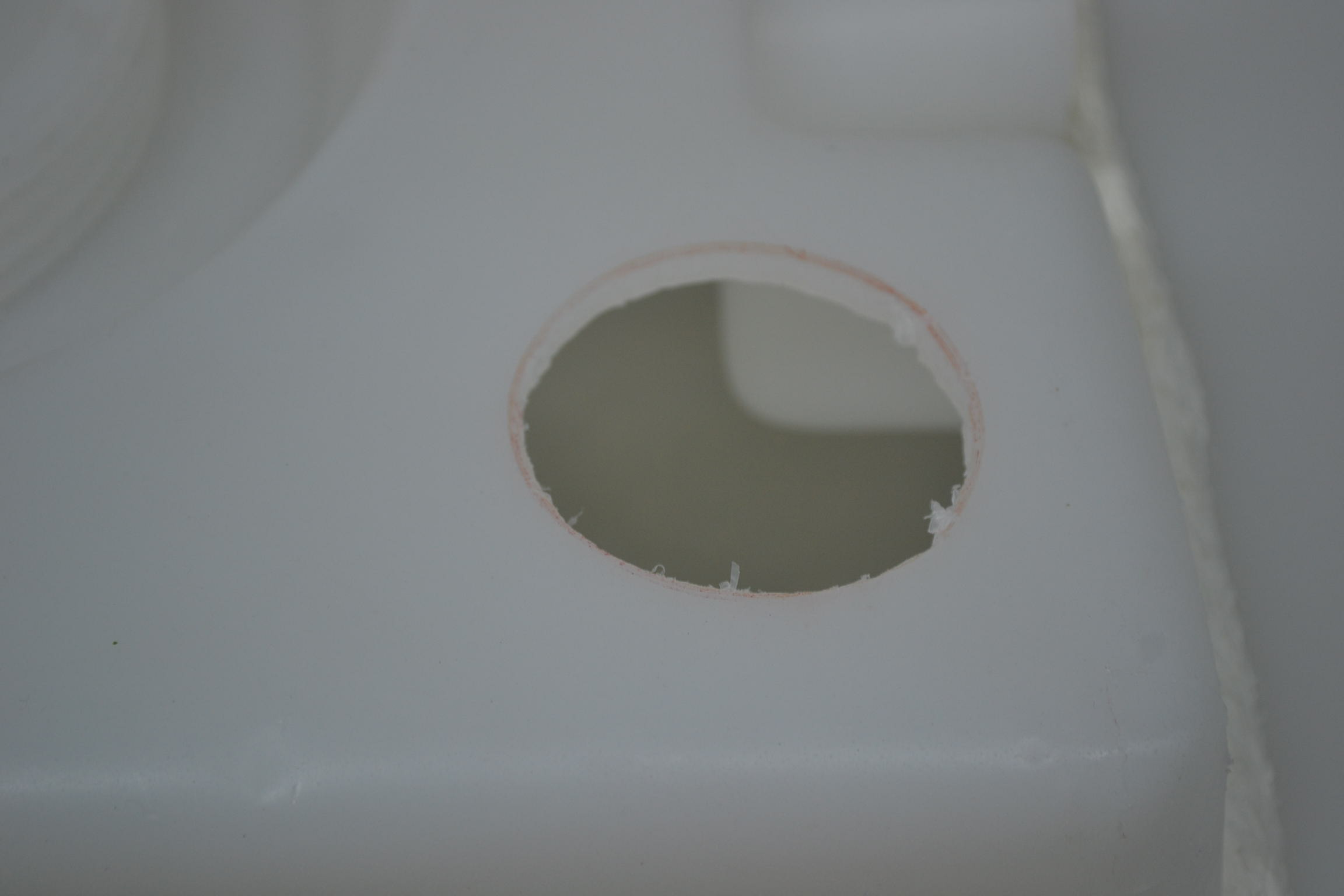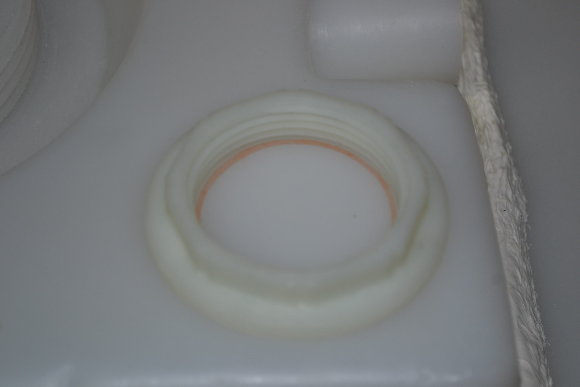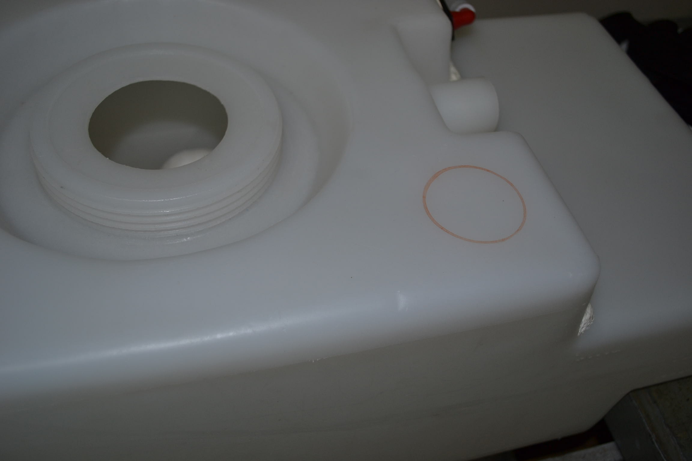 Como el agua nunca iba a poder llegar a tocar el "techo" del deposito por el efecto del tubo rebosadero no me preocupo el hacer ese enorme agujero en el deposito. De todas maneras siempre iba a quedar cerrado por el aforador, ademas de quedar todo bien ajustado y sellado...
