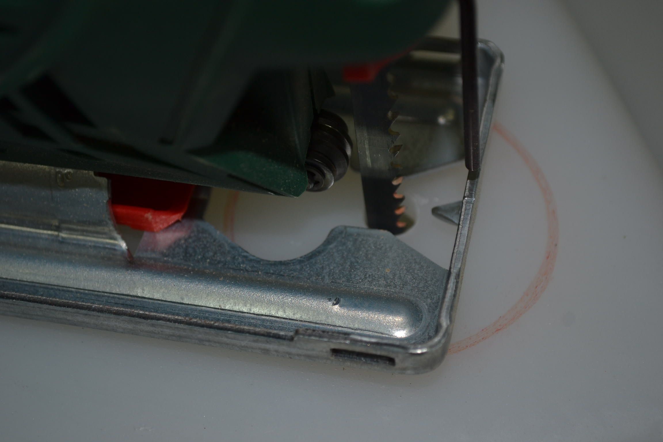 ...con un taladro y la sierra de calar primero, despues con una escofina y lima fina de media caña quedo el agujero a la medida justa...