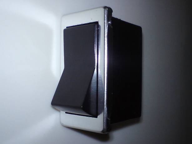 (en primer plano conmutador de entrada, al fondo, mas alto el viejo interuptor "condenado de momento" y debajo el nuevo conmutador a mano desde la cama)