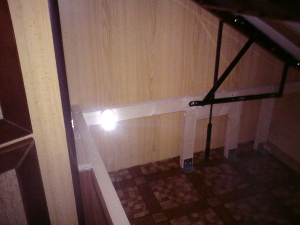 Compré en el IKEA una lampara portatil de tres led y se la he puesto en el arcon de la cama, tiene un interuptor de "presion inverso" (lo he bautizado asi) cuando está presionado no luce y cuando no lo está se enciende, como las neveras. Cuando la cama está bajada no hay luz y si abro se enciende. Puede que compre alguno mas.