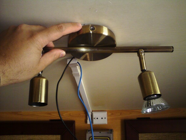 He cambiado la vieja y rota lampara del salon/ahora solo cama por una nueva, la he comprado el Leroy Merlin, creo que unos 12 euros con bombillas, es de tres en lugar de 2.