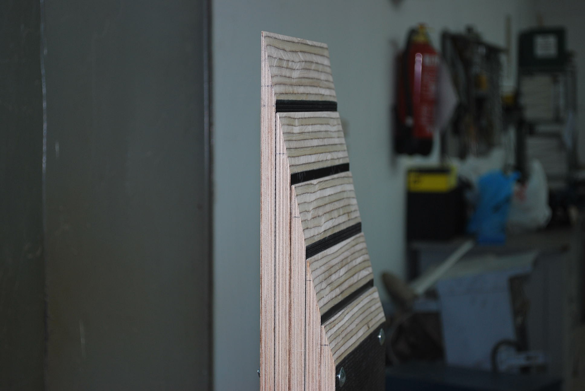 Resulta que compré un retal de esta madera, con una superficie rugosa y pensé que sería la idónea para que agarrara el neumático de la cv; de todas maneras el plafonado es super resistente, flexible y ligero.....