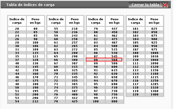 Si por carga te vale con índice 88 = 560 kg/rueda---> total = 1.120 kg en el eje...