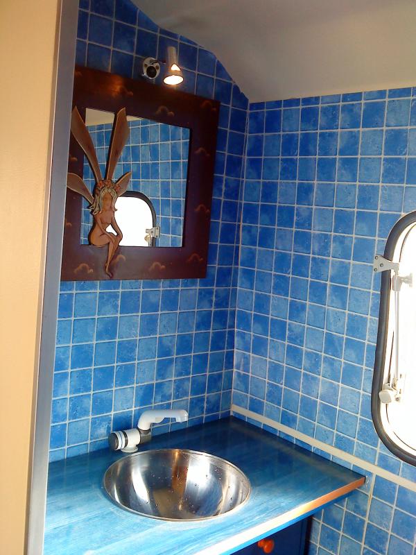 Aqui esta el lavamano,pero todavia en casa,espero que me llegue la llave mañana y terminarlo,es una ensaladera de los chinos 3€ espero que me dure a cobrar,ja ja