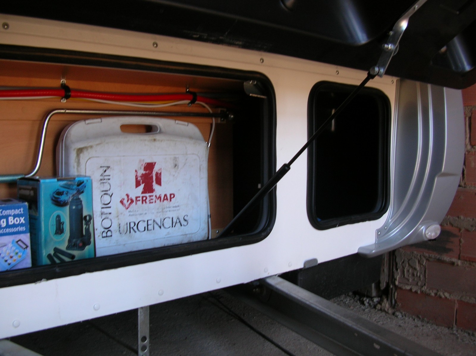 En el arcón de mi cv la parte del alojamiento de la bombona de gas va independiente del resto, con un tablero de madera a parte de las juntas de goma que cierran el portón