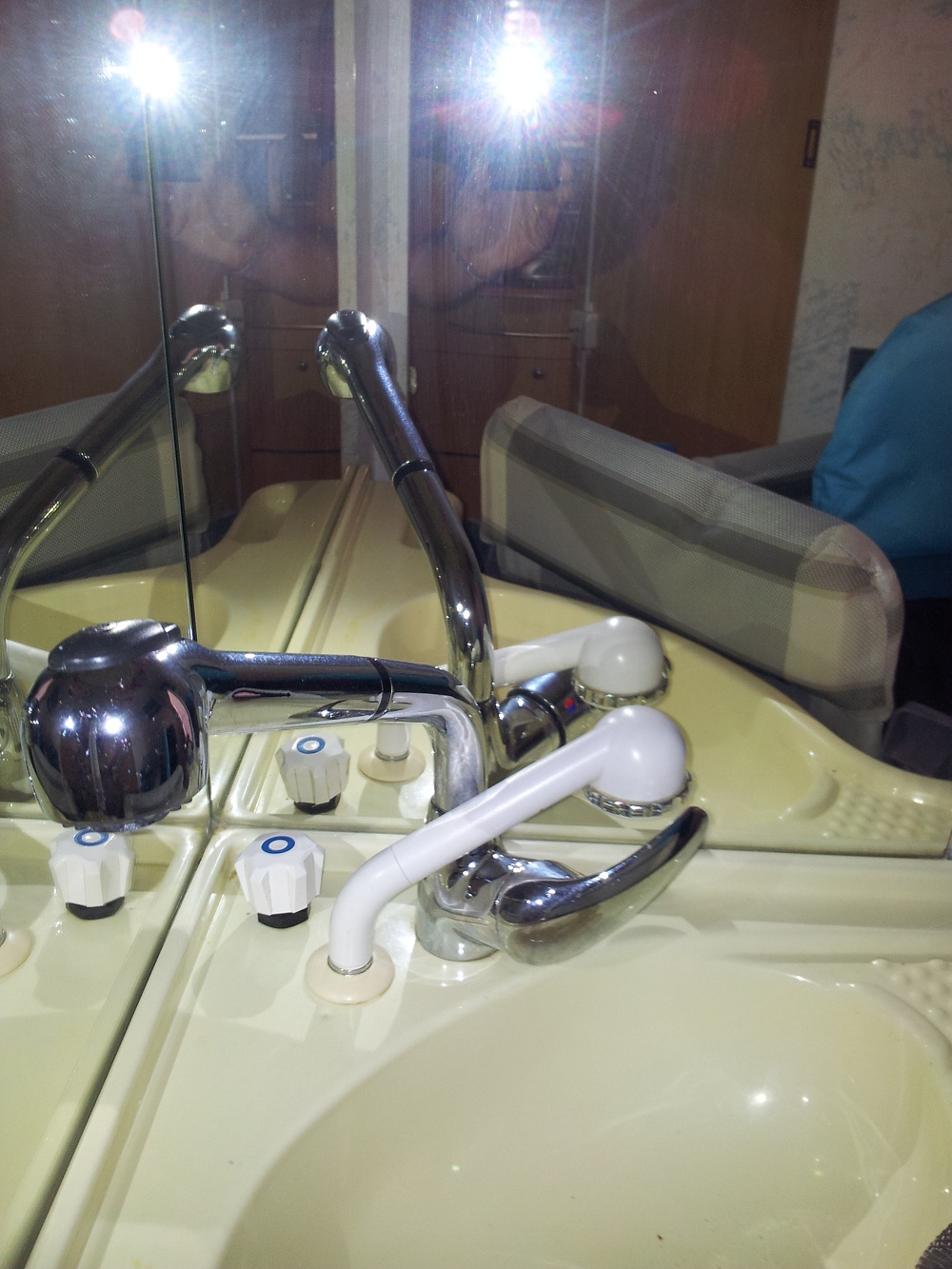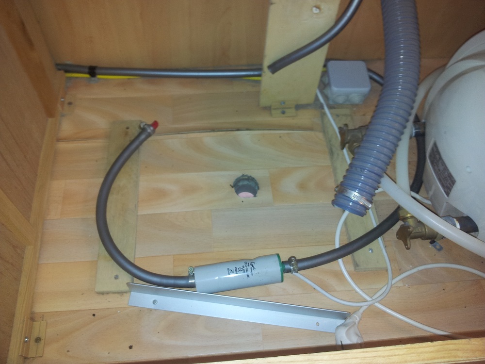 bueno y asi queda en el lavabo y junto al termo un enchufe a 220