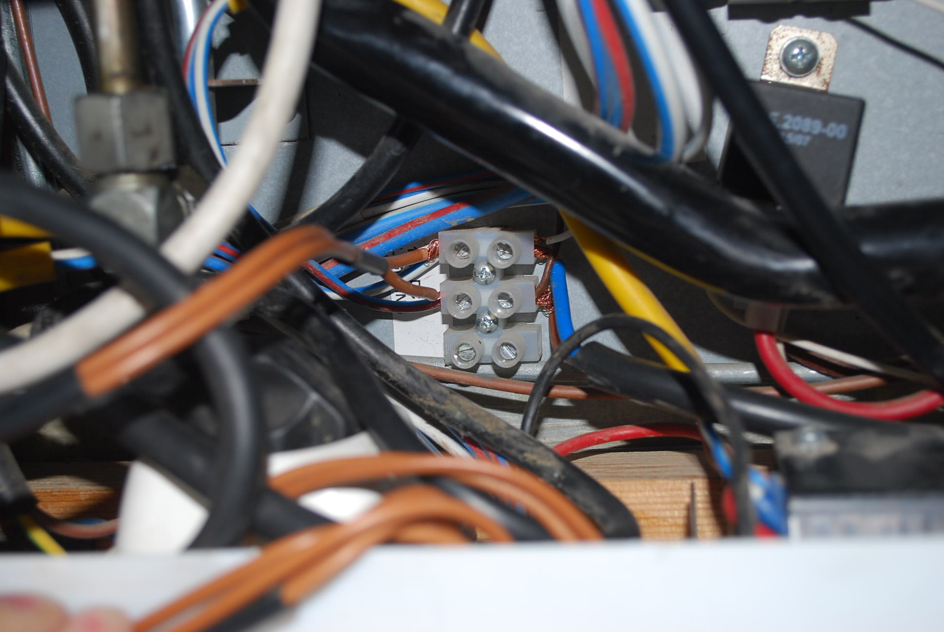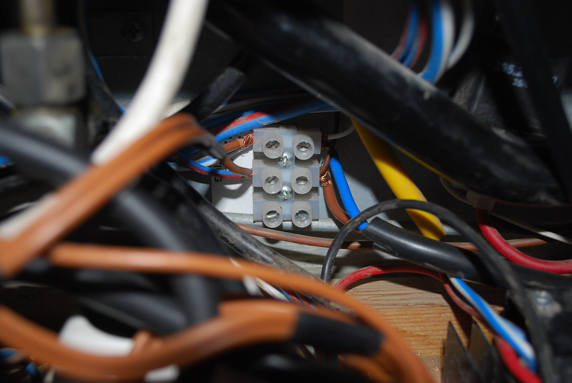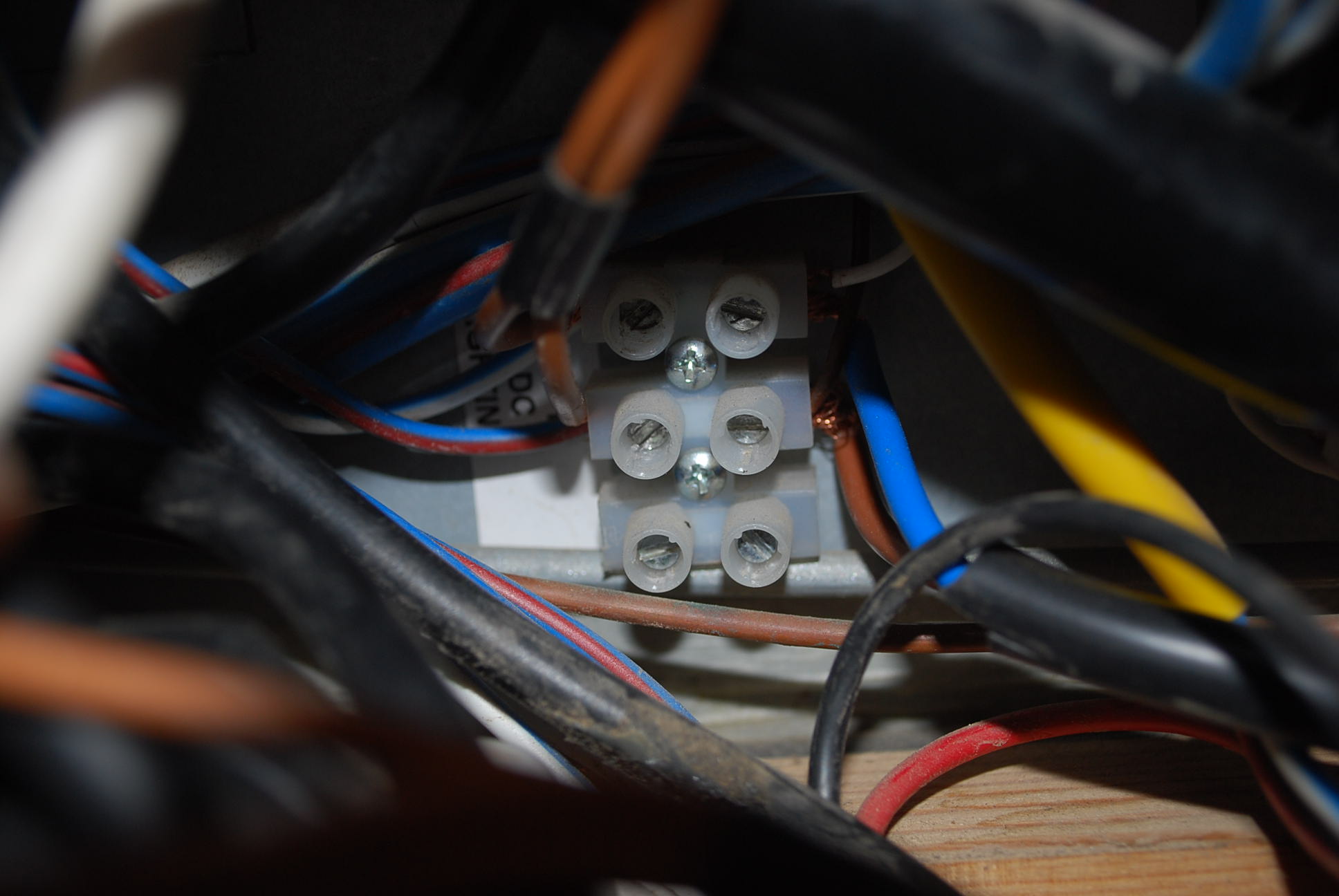 La regleta original está en un lugar un poco lioso para trabajar; así que con esta solución la "alejo" de problemas, por si en el futuro vuelvo a sacar más cables. Sólo hay dos cables conectados en la regleta de 3 alojamientos. Para las luces dá igual la polaridad pero para la toma de 12 V no.