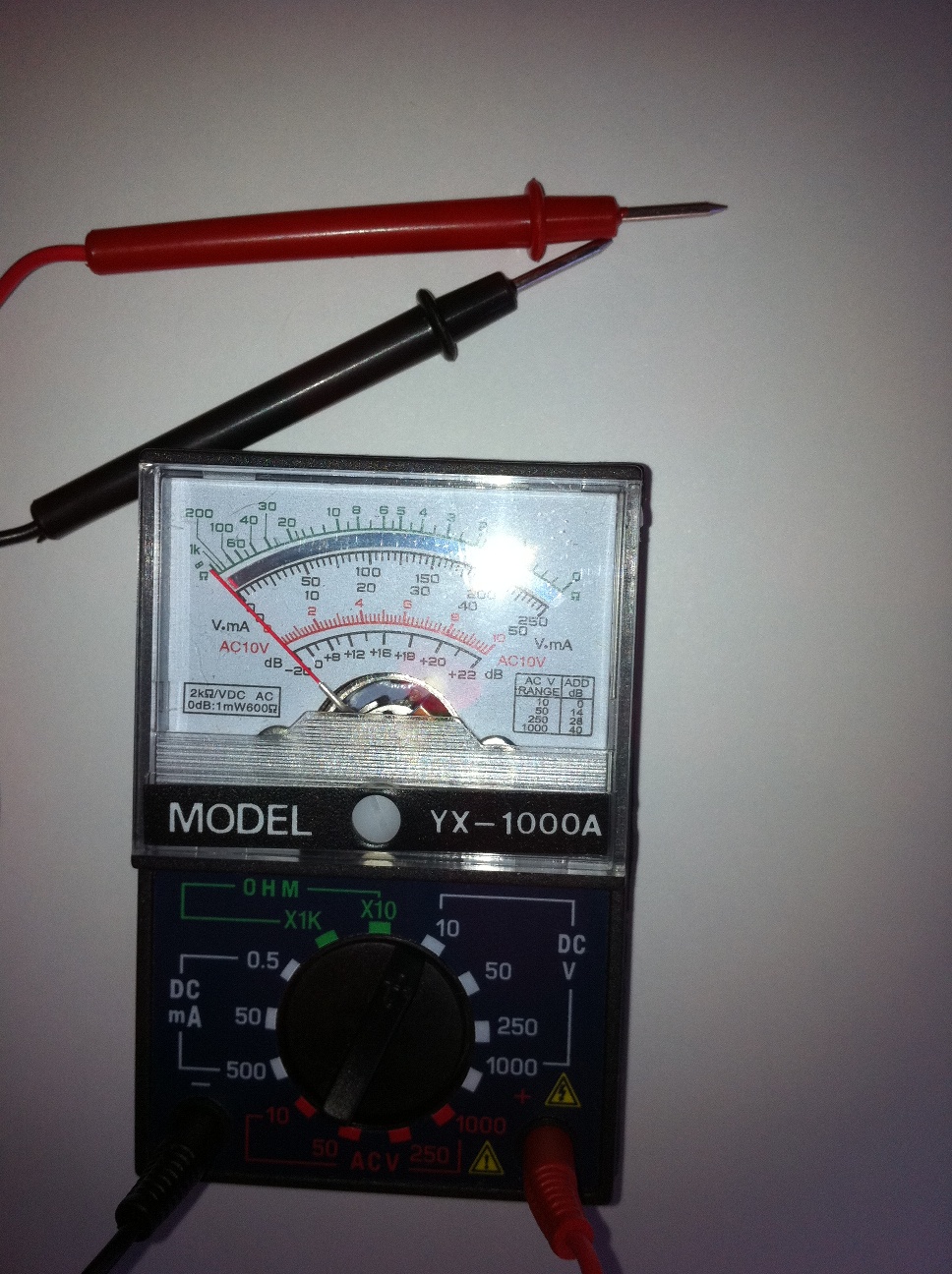 Lo he probado en el transformador del movil y la aguja se mueve., y hasta ahi os puedo contar, pues no tengo ni idea de como funciona este aparatejo. El selector lo he puesto en 10 DC y si pones lo polos bien en el cargador la aguja se mueveo se mueve.