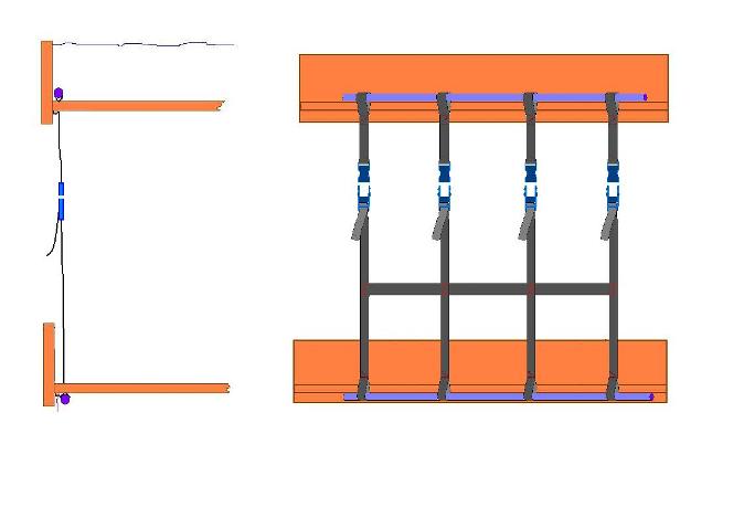 Al final opté por la solucion "Tipo Submarino" unas cinchas, con unos cierres rapidos y dos varilas de aluminio.