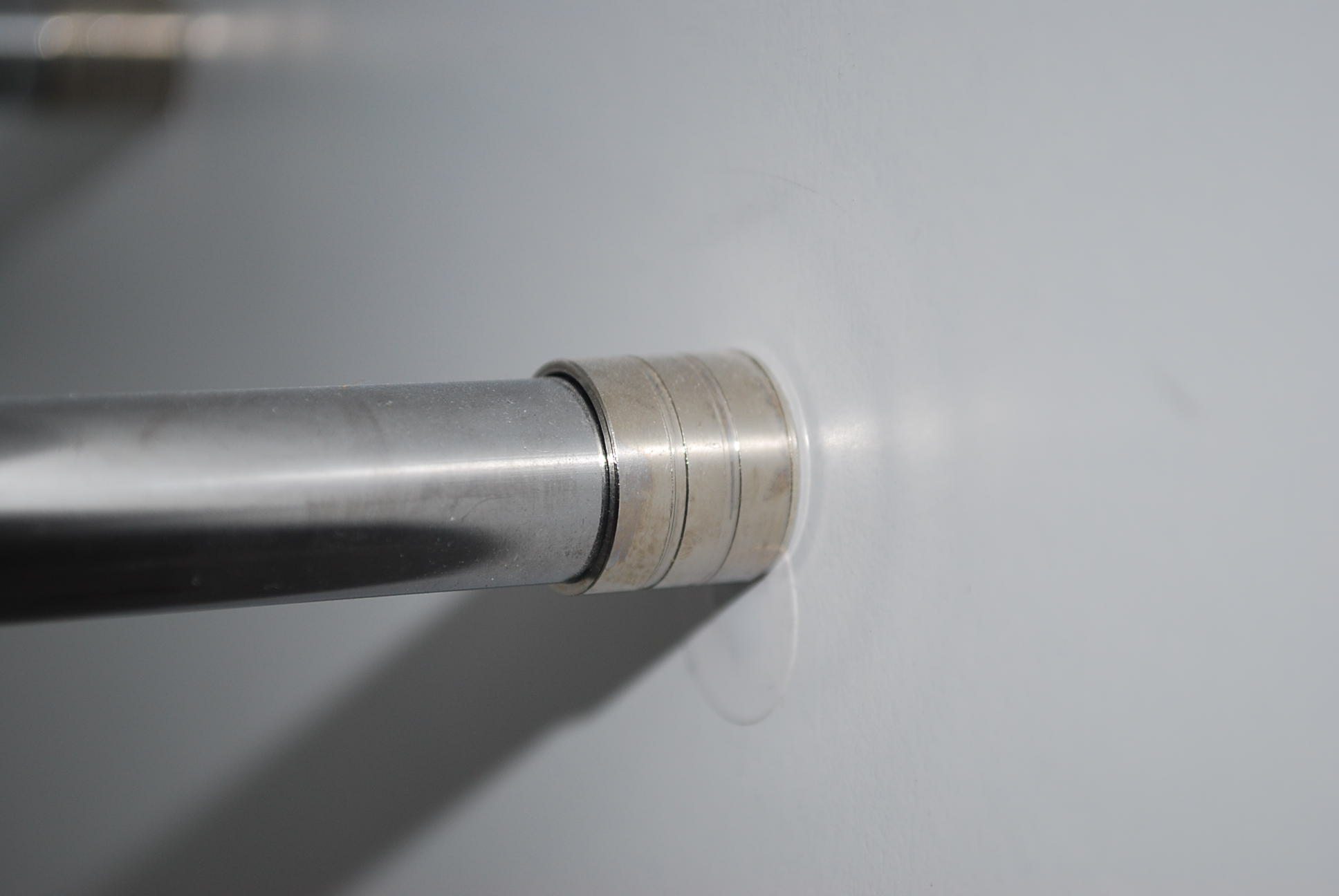 Entonces pensé en colocar la barra cincada sobre el soporte de la barra de perchero; ya que se sujetaba con tres tirafondos y, sobre todo, se podía quitar al instante. Pero "bailaba" demasiado el tubo de 15 mm en este soporte.