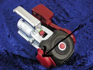 1º,- Levantar la palanca "P" . 2º,- Girar la ruedecilla hacia la izquierda, con cuidado para no dar mas vueltas de la cuenta y trabarla con la anilla retén (fotos 1 y 2). 3º,- Agarrar por la empuñadura , levantar y desenganchar.