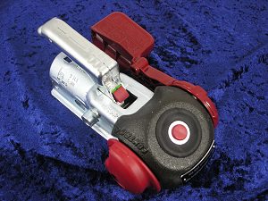 Al girar la ruedecilla hacia la izquierda, debemos parar al notar la más mínima resistencia o la dejaremos "clavada" con la anilla retén (fotos 1 y 2). Si se nos ha trabado , al girar a derecha oiremos el cric-cric pero la ruedecilla no avanzará empujando al ferodo. Si nos hemos empleado a fondo girando hacia la izquierda la ruedecilla estará completamente trabada y no girará ni a derecha ni a izquierda ni oiremos cric-cric ni "na". Para destrabarla deberemos golpear CON UNA MAZA DE GOMA la ruedecilla para hacerla girar hacia la derecha, en el sentido de las agujas del reloj, NUNCA HACIA LA IZQUIERDA. Los golpes secos y firmes y se deben dar lo más al borde que podamos de la ruedecilla, también se puede emplear una madera con la punta ruma a modo de cincel.