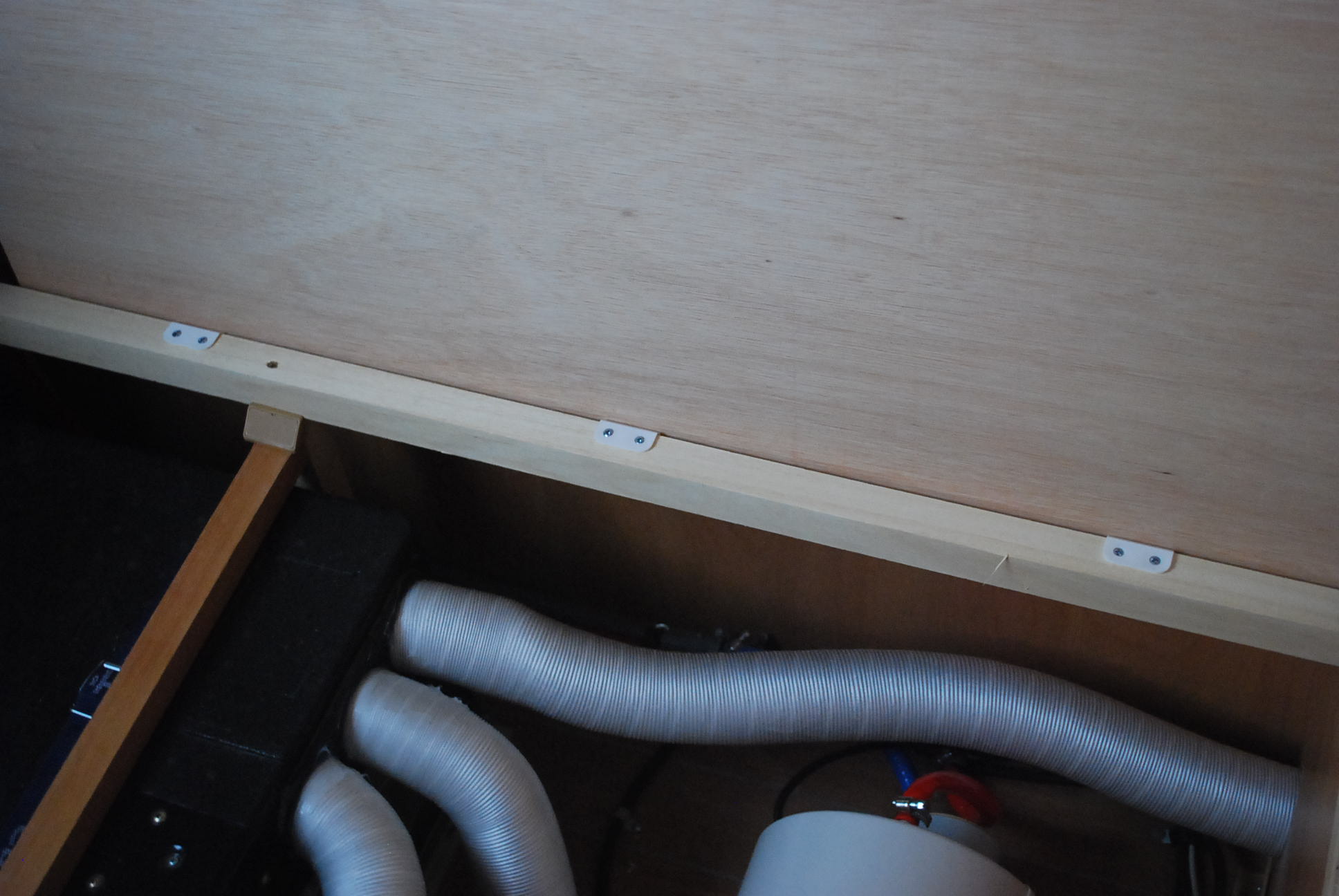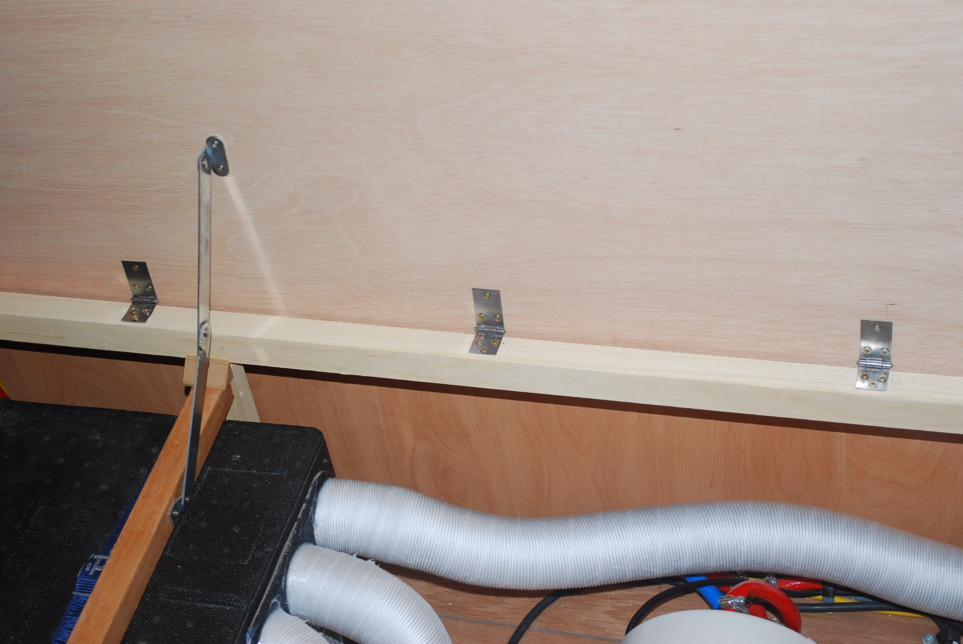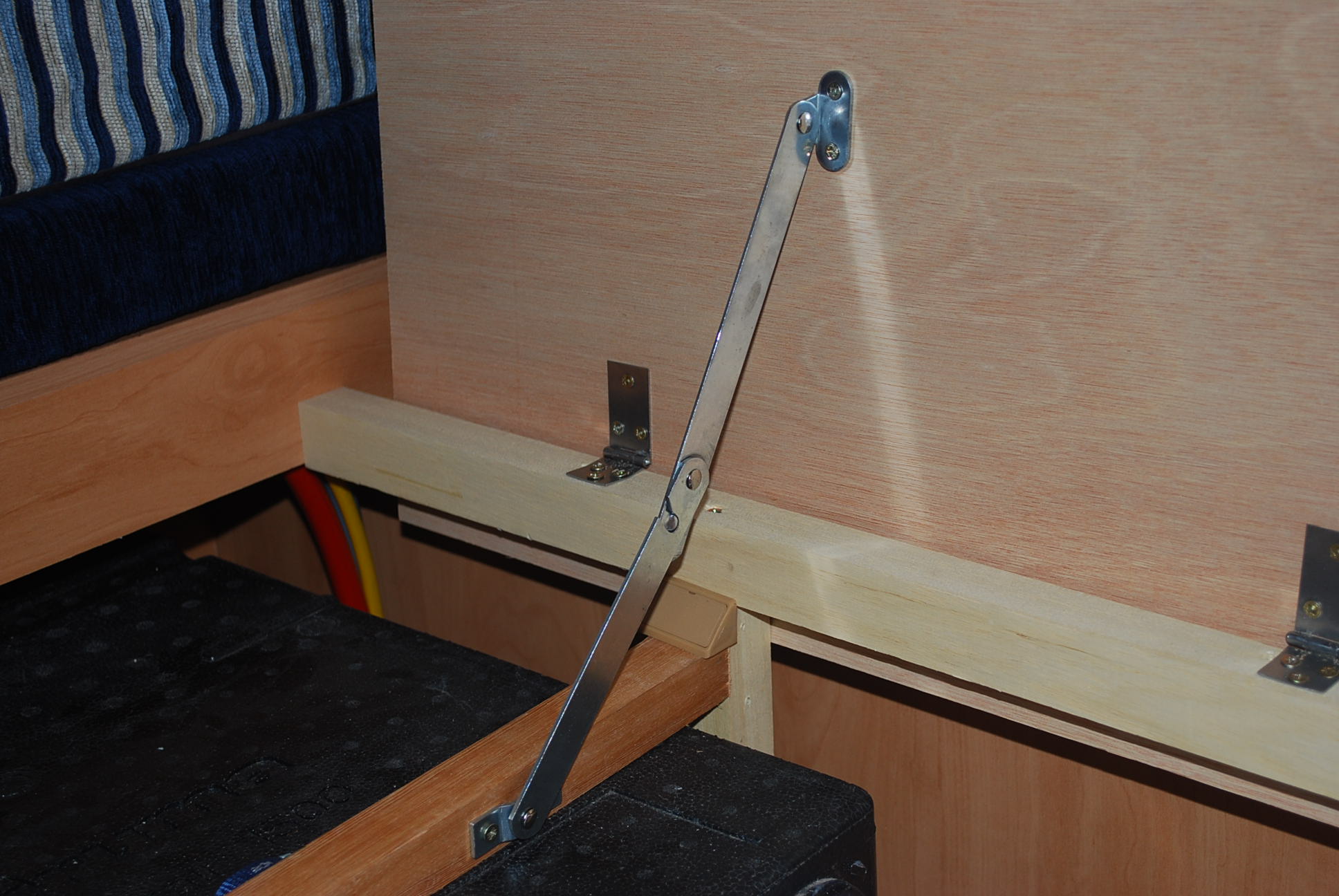 Hay que tener cuidado a la hora de montar los compases, ya que hay que promediar donde se van a atornillar para que una vez cerrados no toquen ni en la tapa, ni bajen demasiado hacia los arcones, ni (en mi caso) toquen en el listón de madera, y que en el recorrido basculen entre sí las dos pletinas sin forazrse en la articulación.