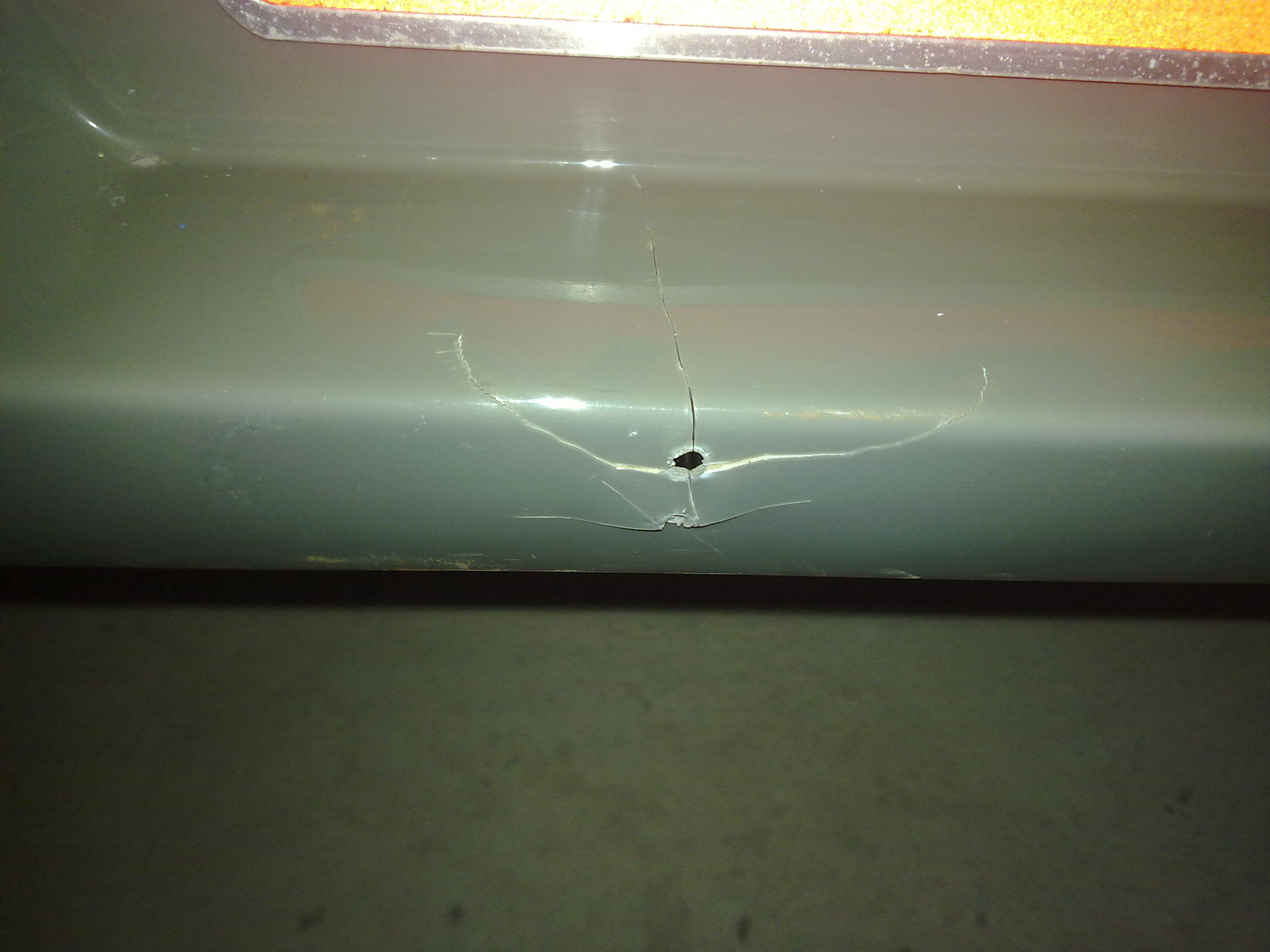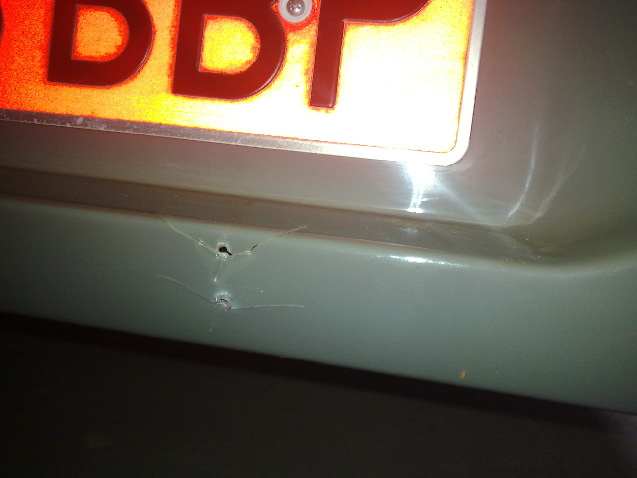 Asi es como estaba con los agujeros de la matricula y el consiguiente daño, las grietas.
