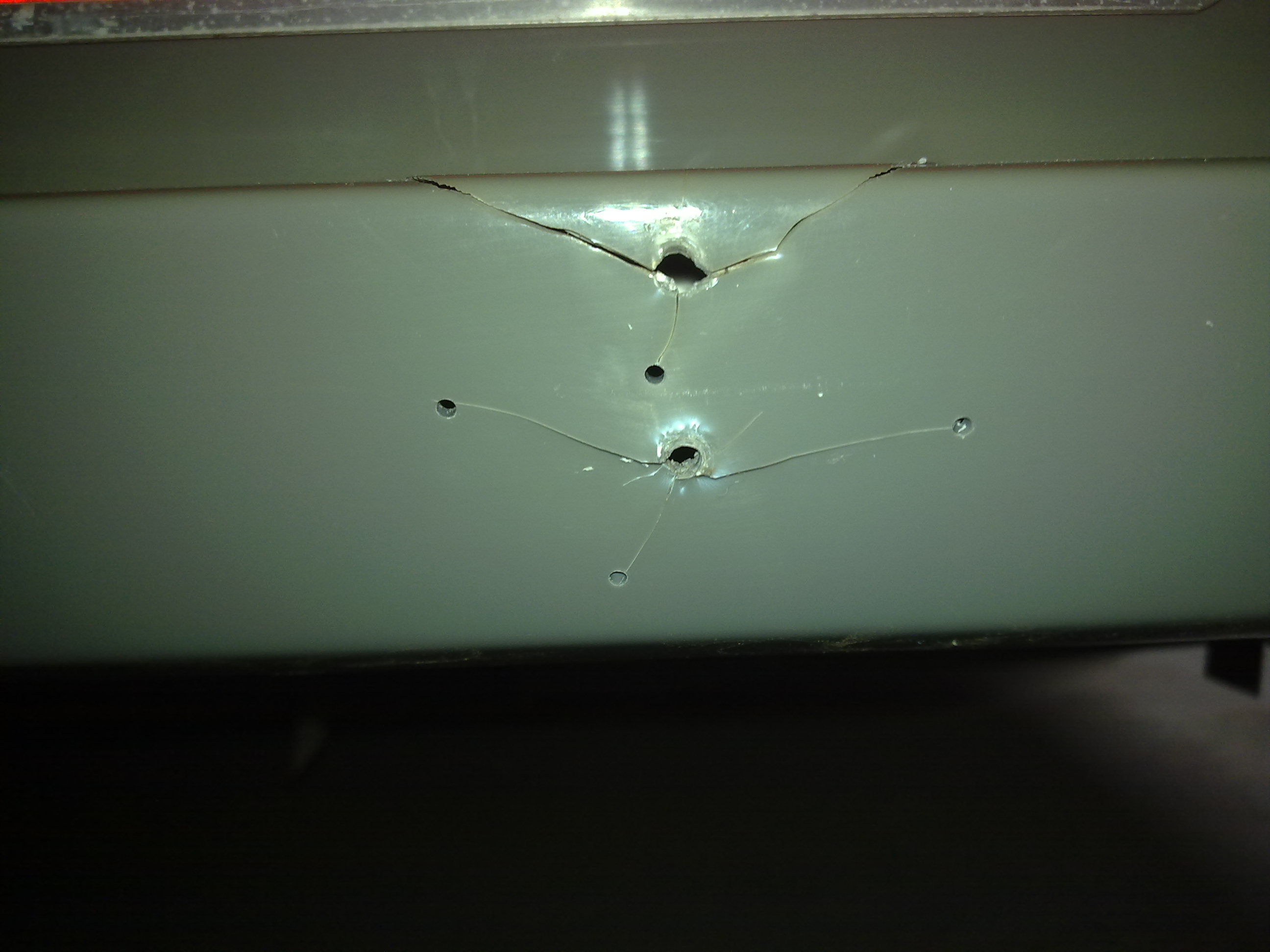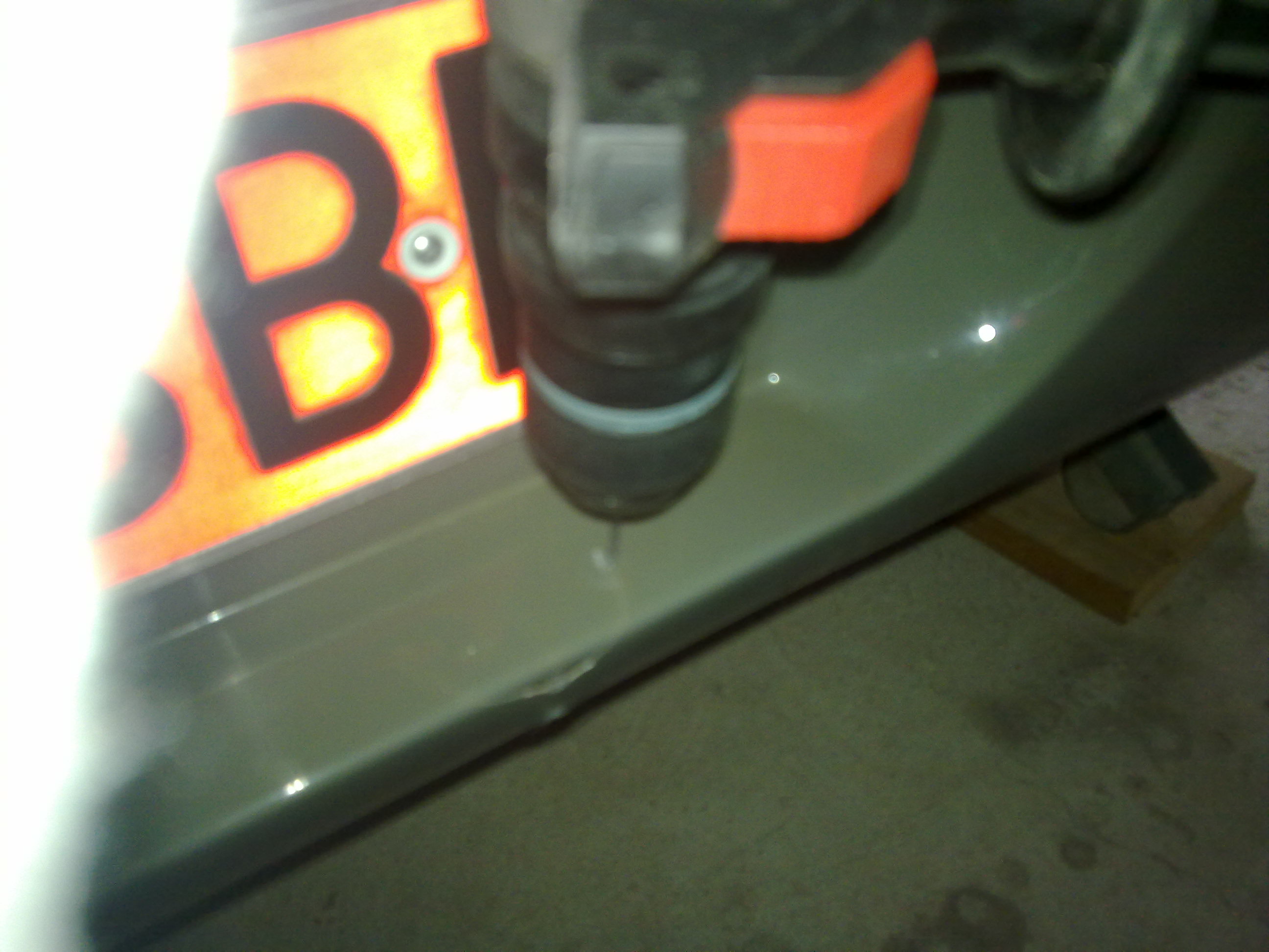 tuvo otra cosa que taladrar por debajo de la placa roja, con el consiguiente daño en la parte