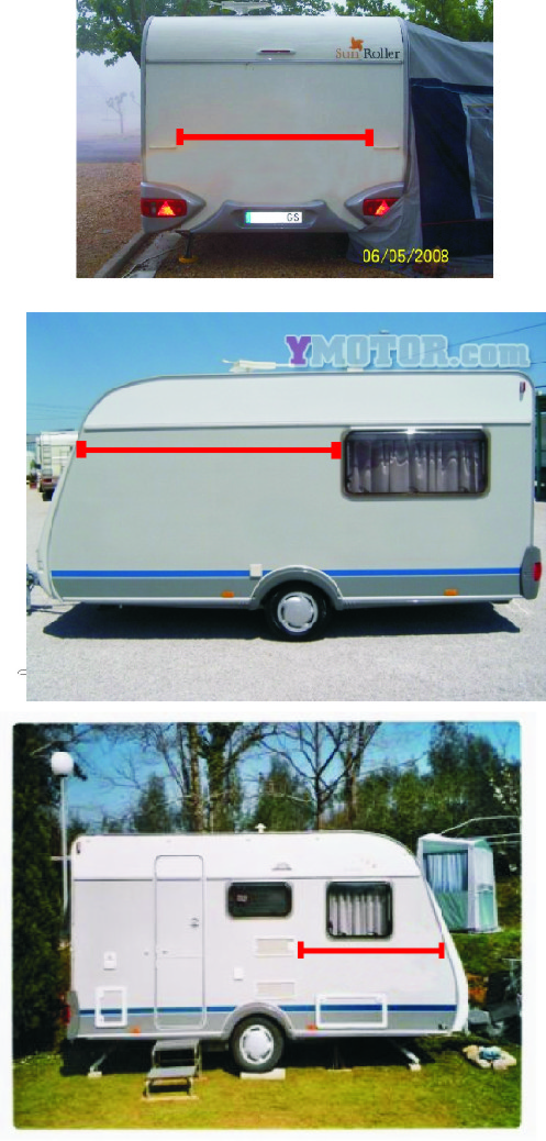 buenas tardes agradeceria la ayuda ya que no puedo medir mi caravana por que la tengo a unos 100km de distancia el modelo es una 380t como la de la foto y las lineas rojas son lo que me gustaria medir gracias y un saludo