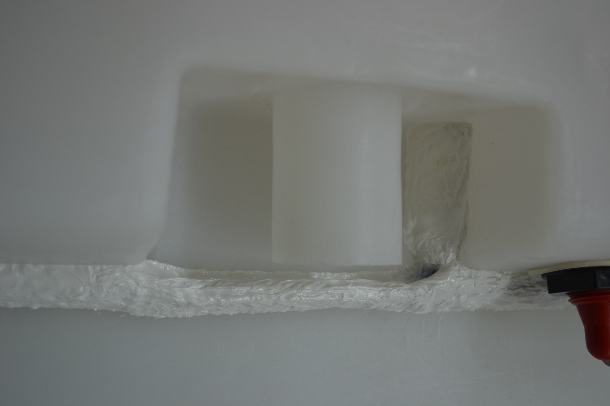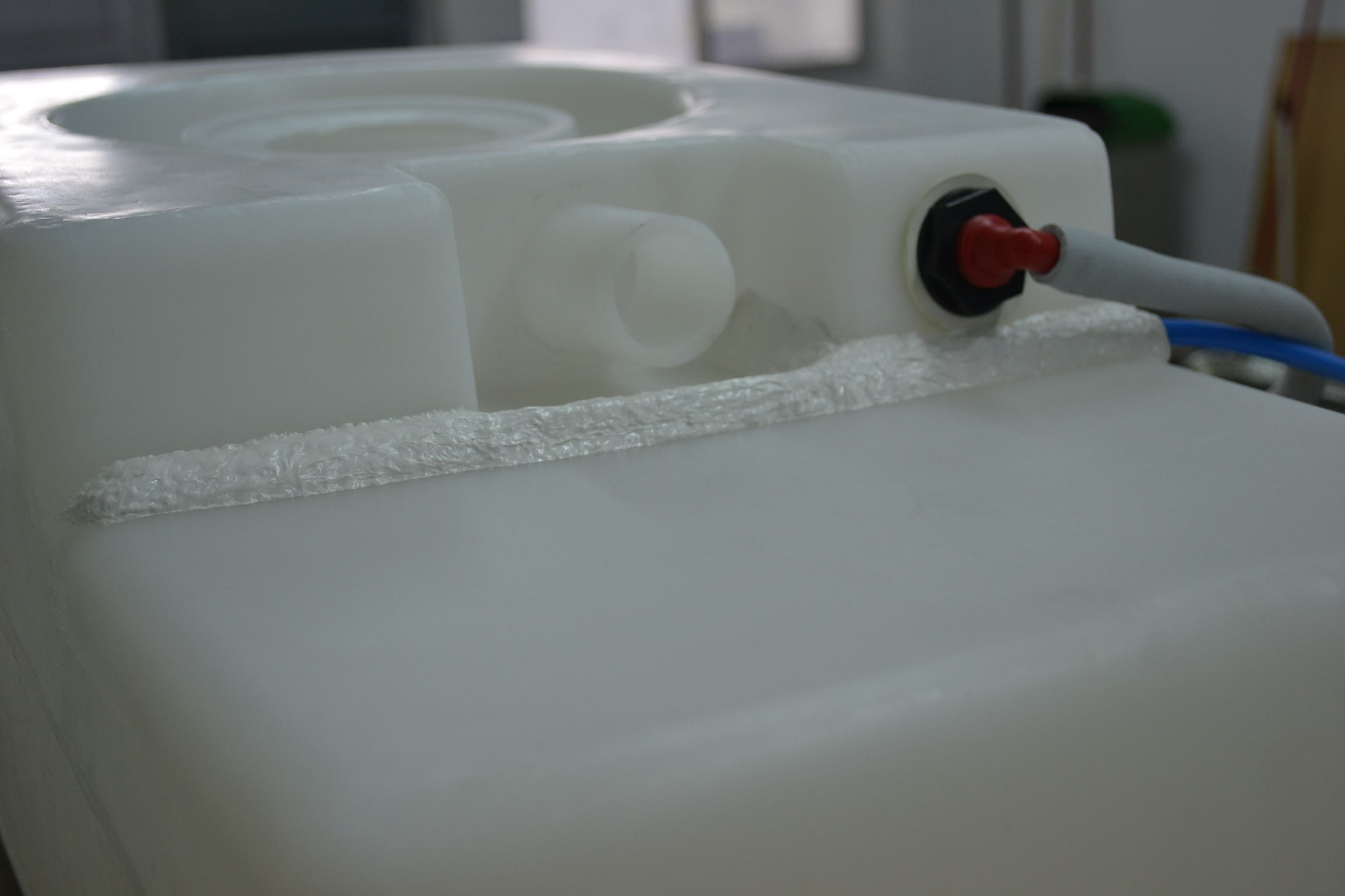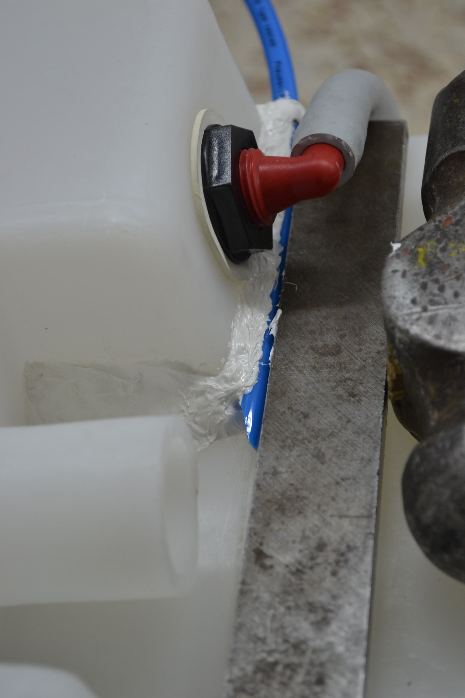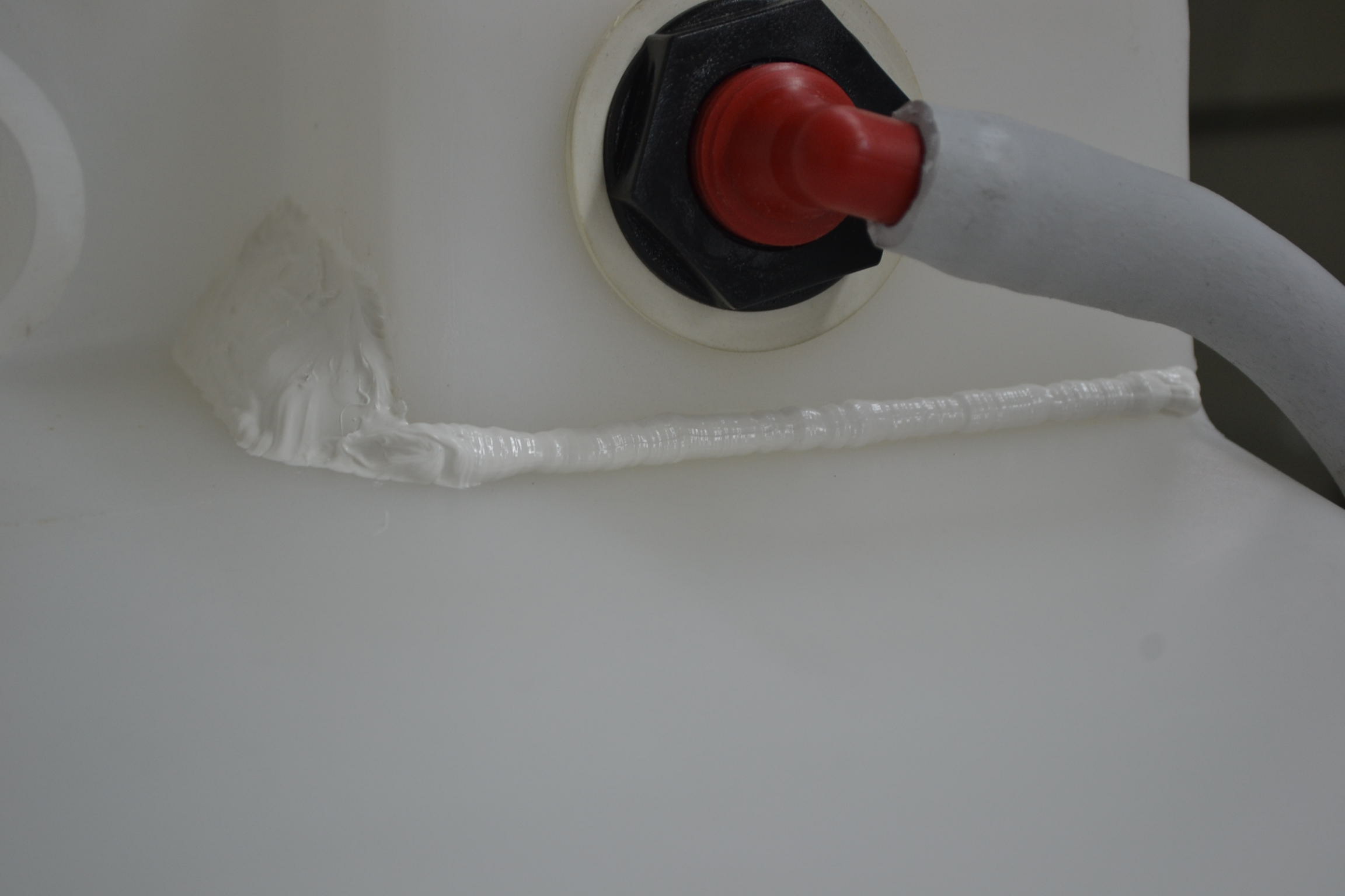 Con el deposito fuera de la cv y pensando que el origen de la fuga era en la union citada me dispuse a crear una "barrera" para evitar que en un momento dado saliese agua en alguna ocasion y que esta no llegase a donde siempre, el suelo de la cv.