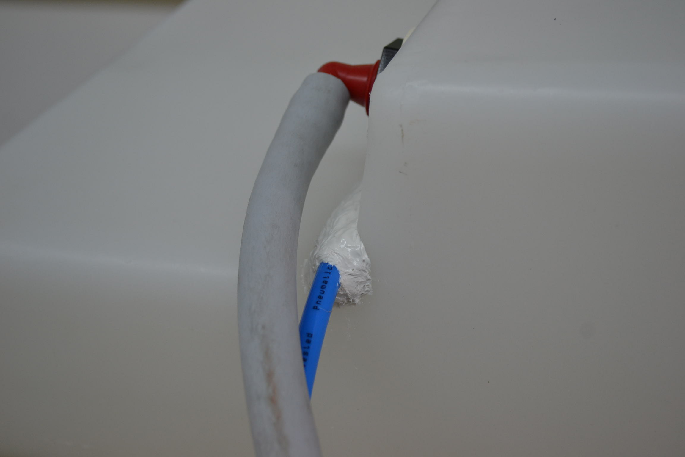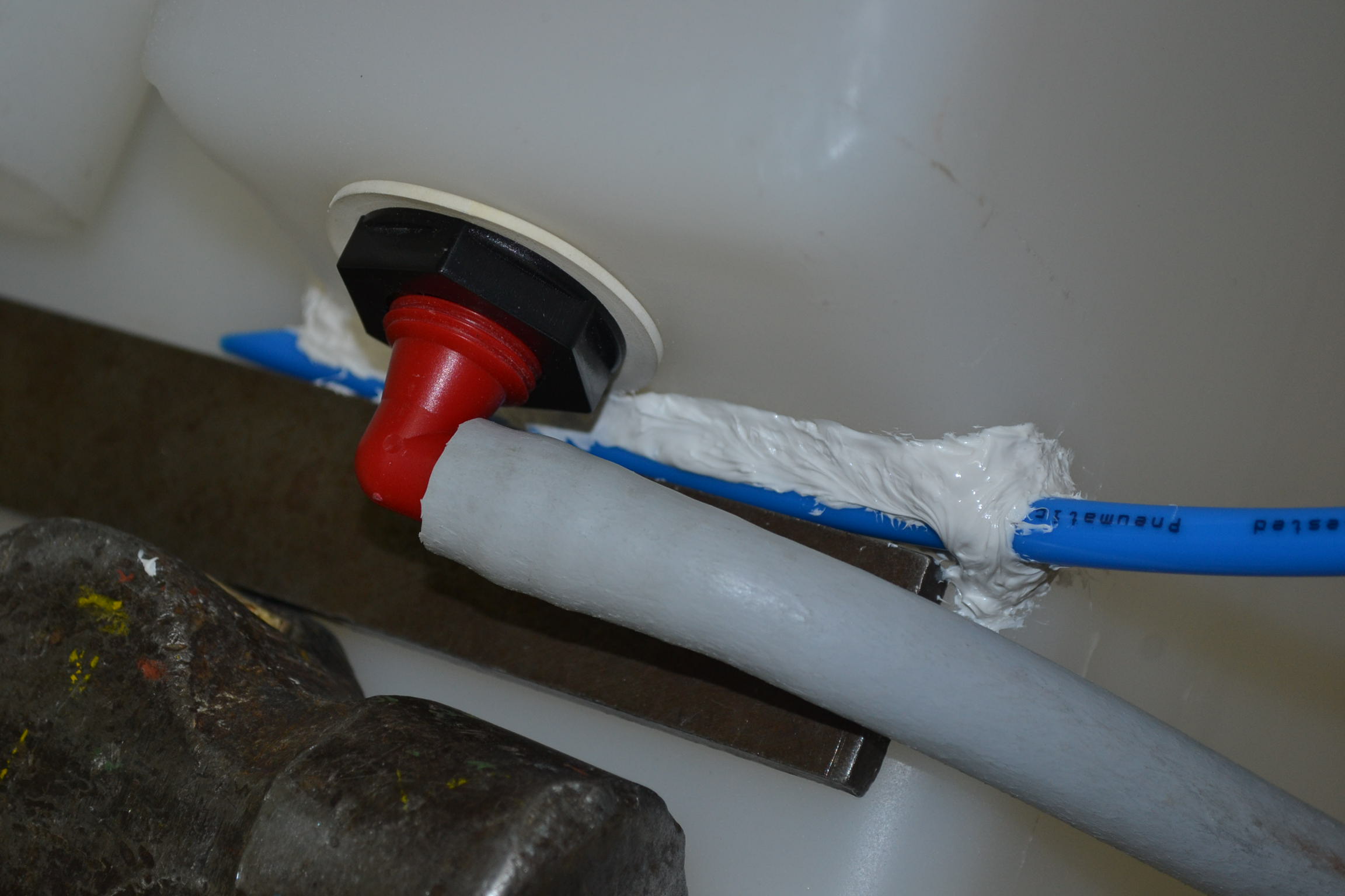 Tambien tenia hecha la "presa" con esta masilla y le acople un tubo para aire comprimido para que hiciera de desag¨ue en su caso: