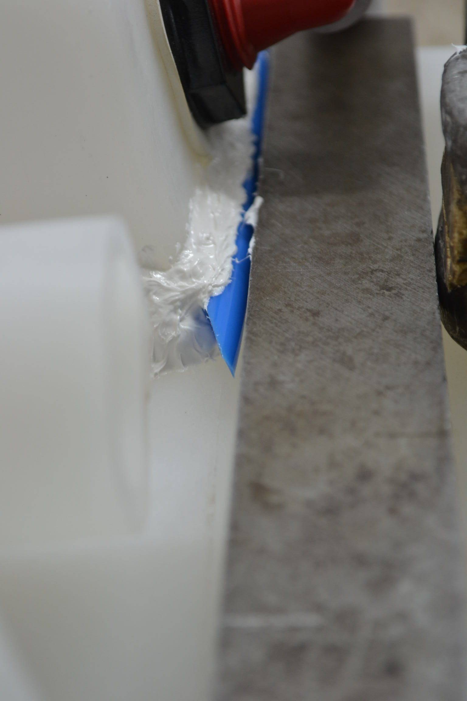 Me vendieron una masilla capaz de adherirse a "casi" todos los plasticos ( en la tienda de suministros de fontaneria no conocian otra mejor... ). Esta masilla es muy pegajosa y cuesta un monton moldearla. El trabajo para ponerla y como queda al final no tiene nada que ver como cuando usamos silicona...