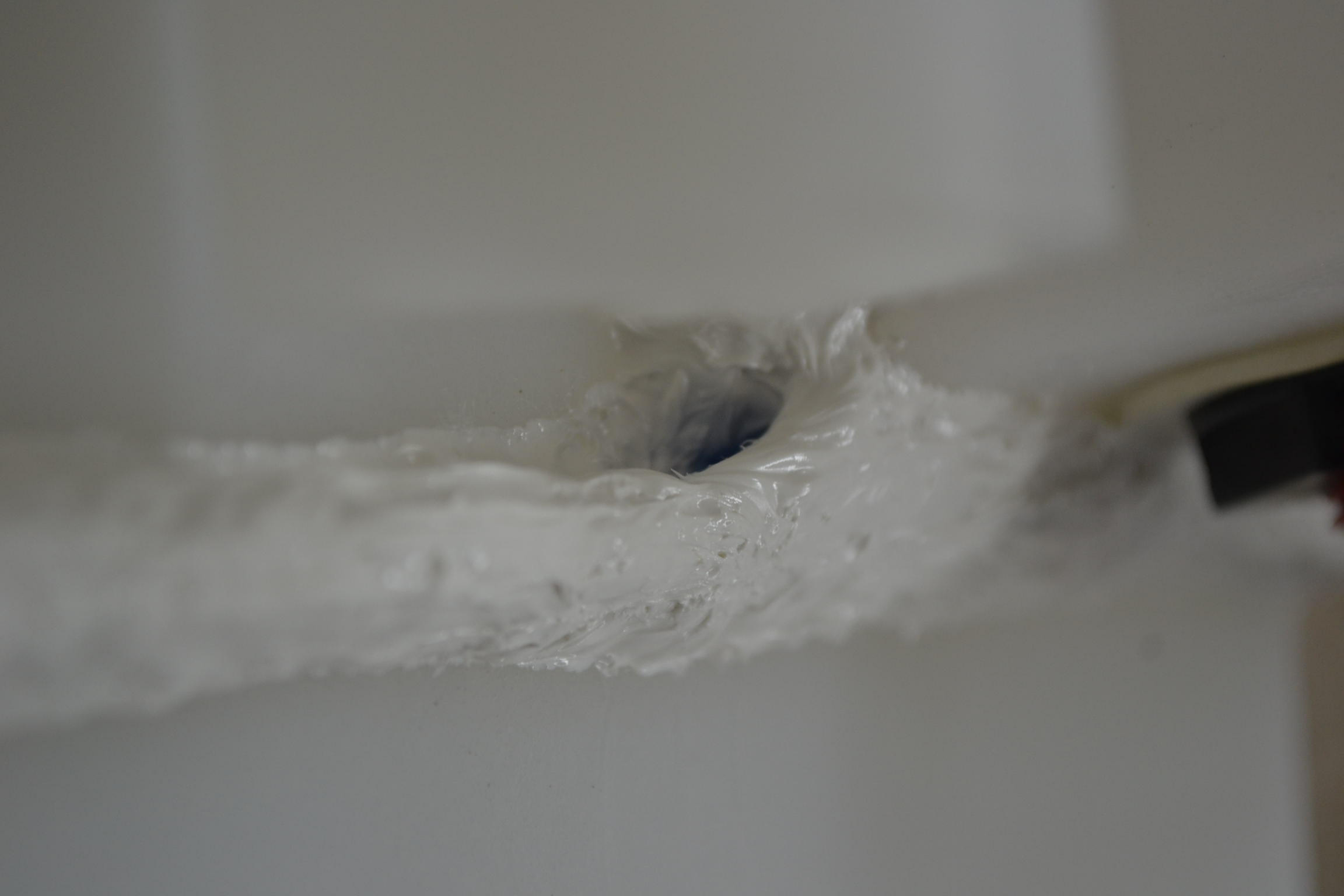 ...cuando la masilla quedo endurecida segui aplicando mas, formando la "presa"...