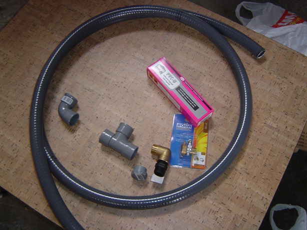 Para los desagues, siguiendo las indicaciones que encontré por aqui  (por desgracia no recuerdo a quien se lo he leido, lo siento) pero yo compre tubo flexible , unos codos y una "T" pegamento especifico y un taponcito y arreglado, te pongo las fotos.