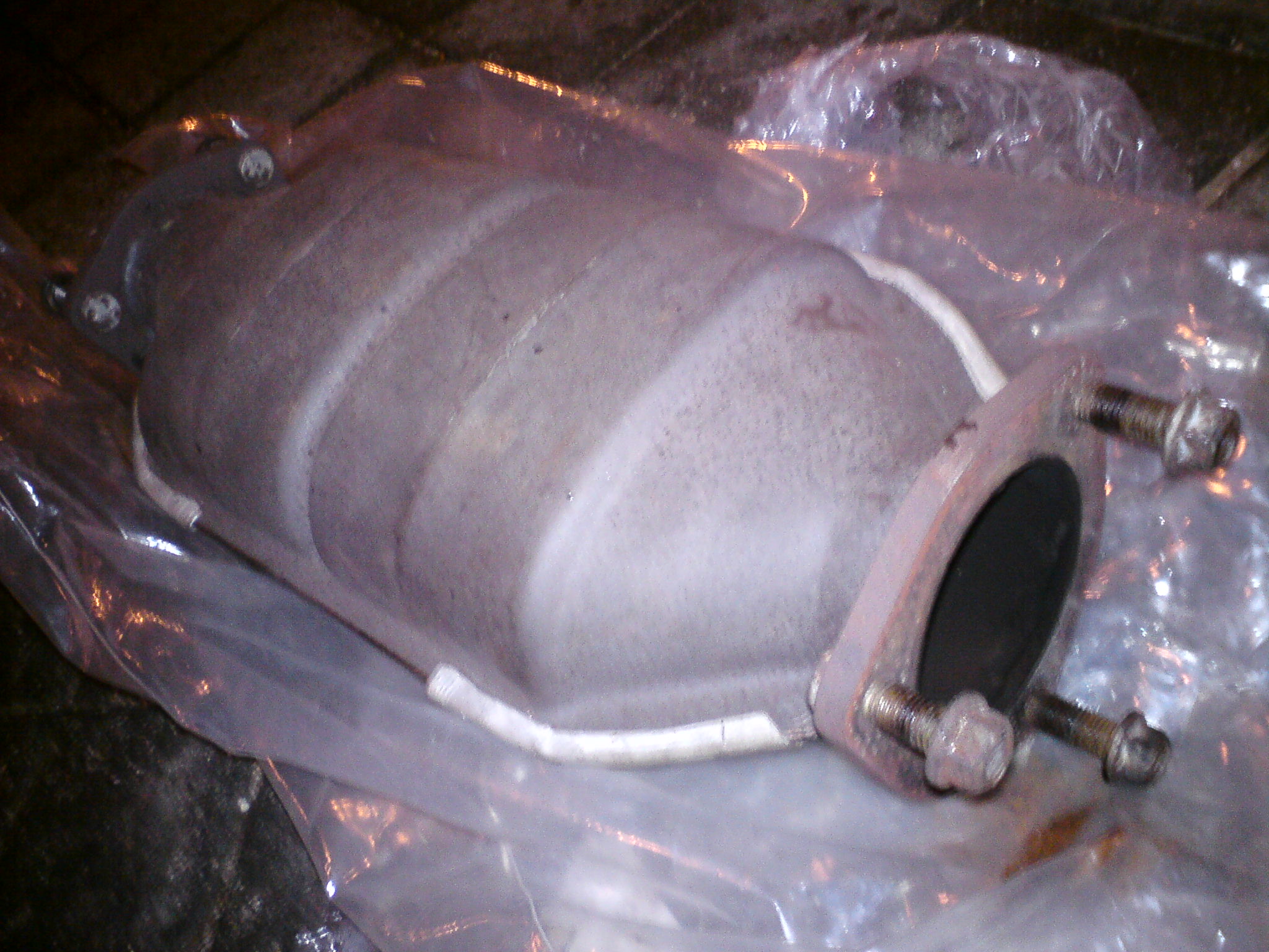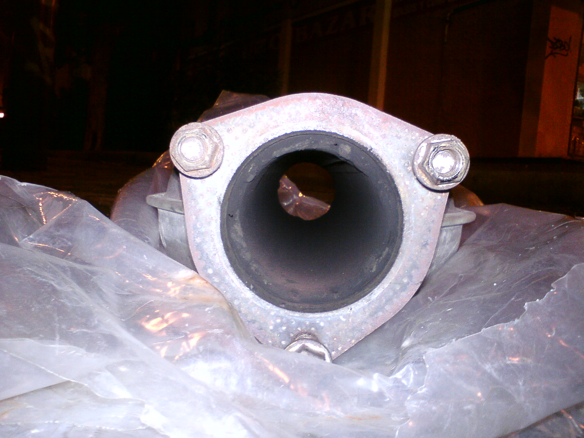 Una vez desmontado, confirmé que ya no había cerámica en el, corté un tubo de andamio (que justo entraba dentro) con la longitud del catalizador y lo soldé por los extremos. Después lo coloqué en su sitio.