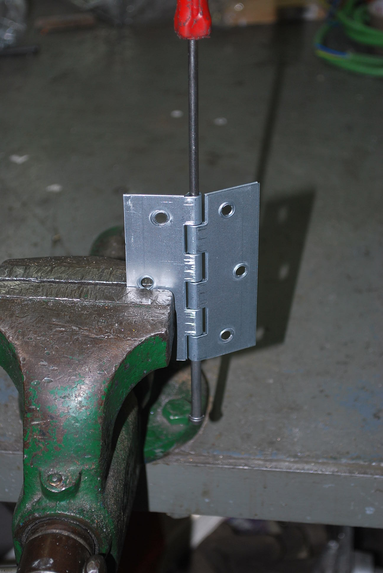 Después he comprado 4 bisagras que he desmontado. El diámetro del eje es similar al de la cesta.