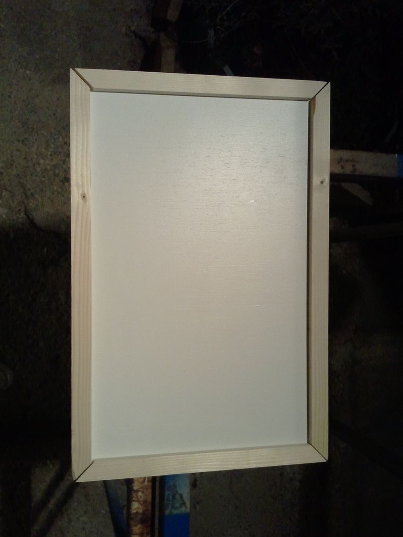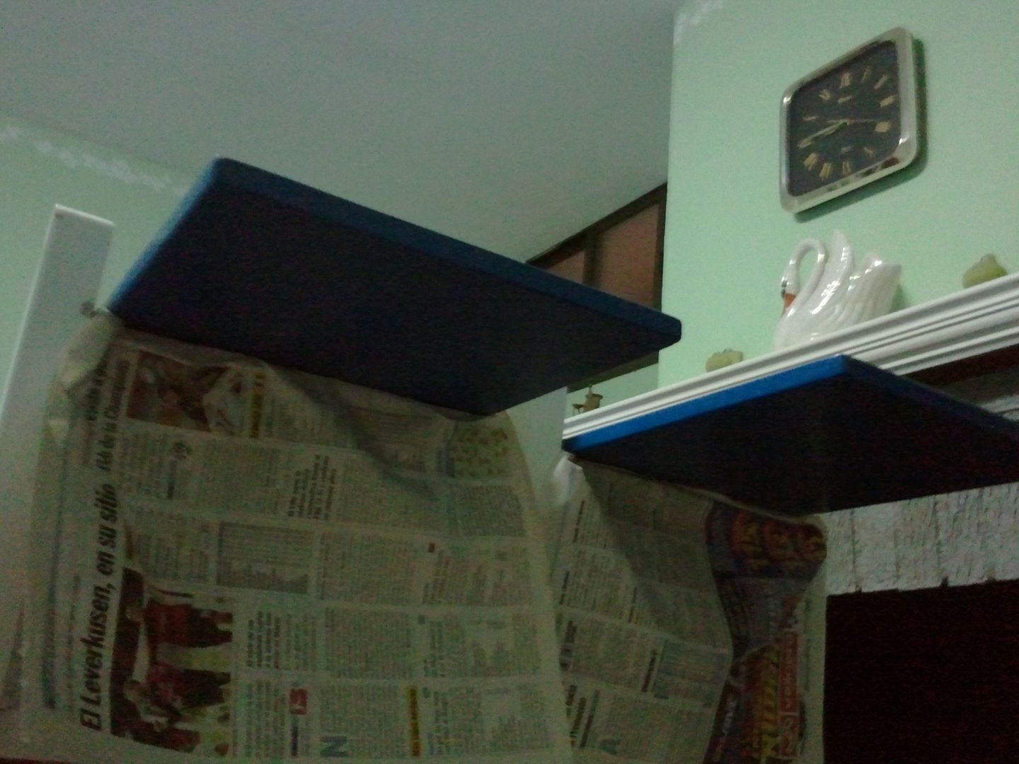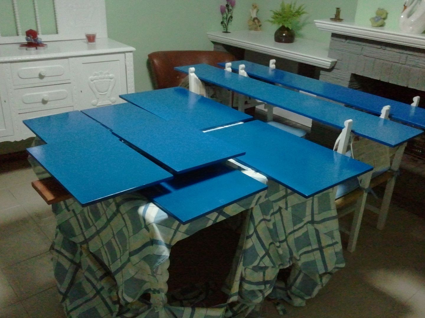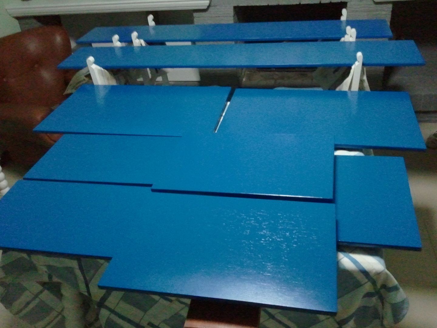 Asi que he ido un ratillo esta tarde. He pintado la primera capa de azul en la otra cara. Tambien ya tengo mesa, lo que tengo que cortarla que es muy grande.