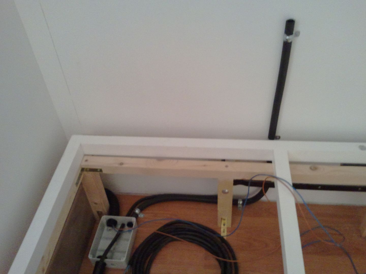 Tambien he puesto el tubo que llevara los cables al interruptor y a los enchufes. Aqui va una separacion para la consensacion, por eso puedo pasar el tubo por detras.
