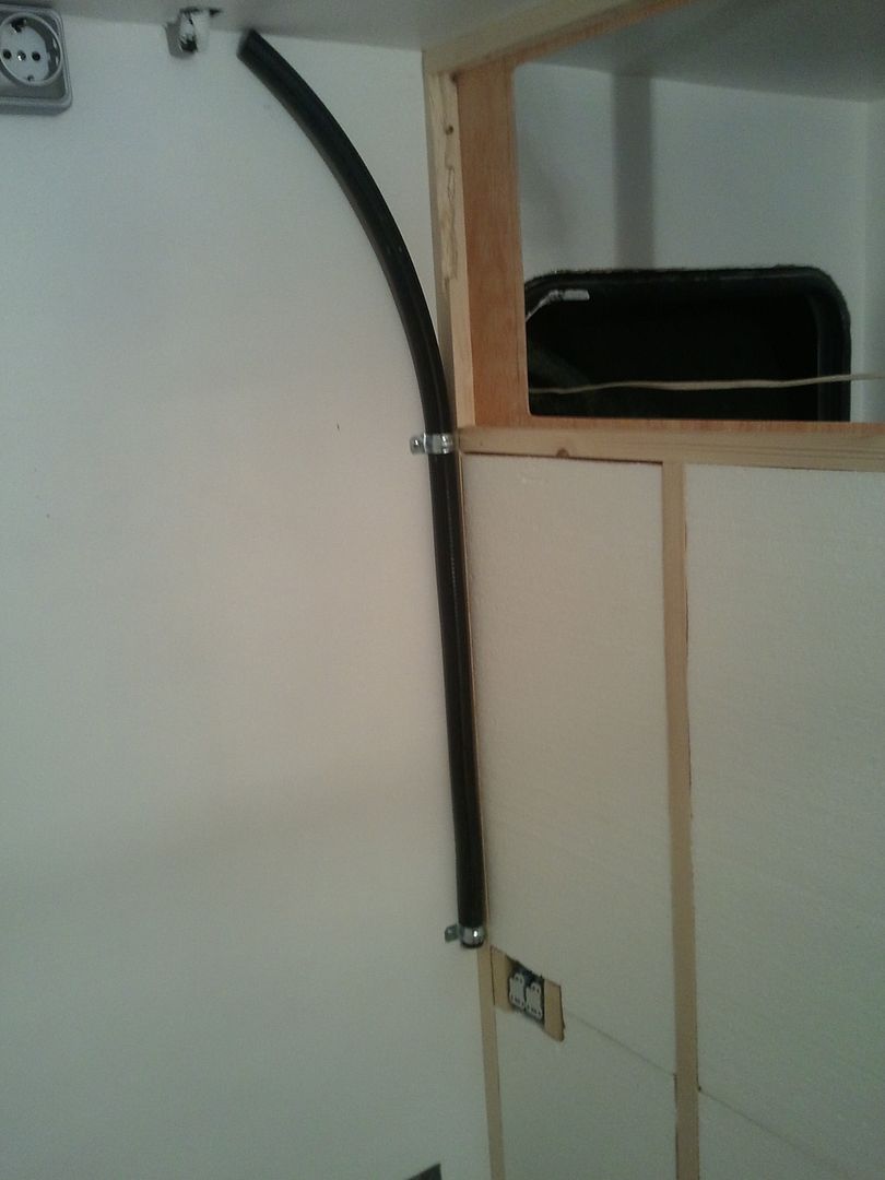 He hecho un agujero pasante para pasar el tubo por dentro el cajon de le hice al paso de rueda.