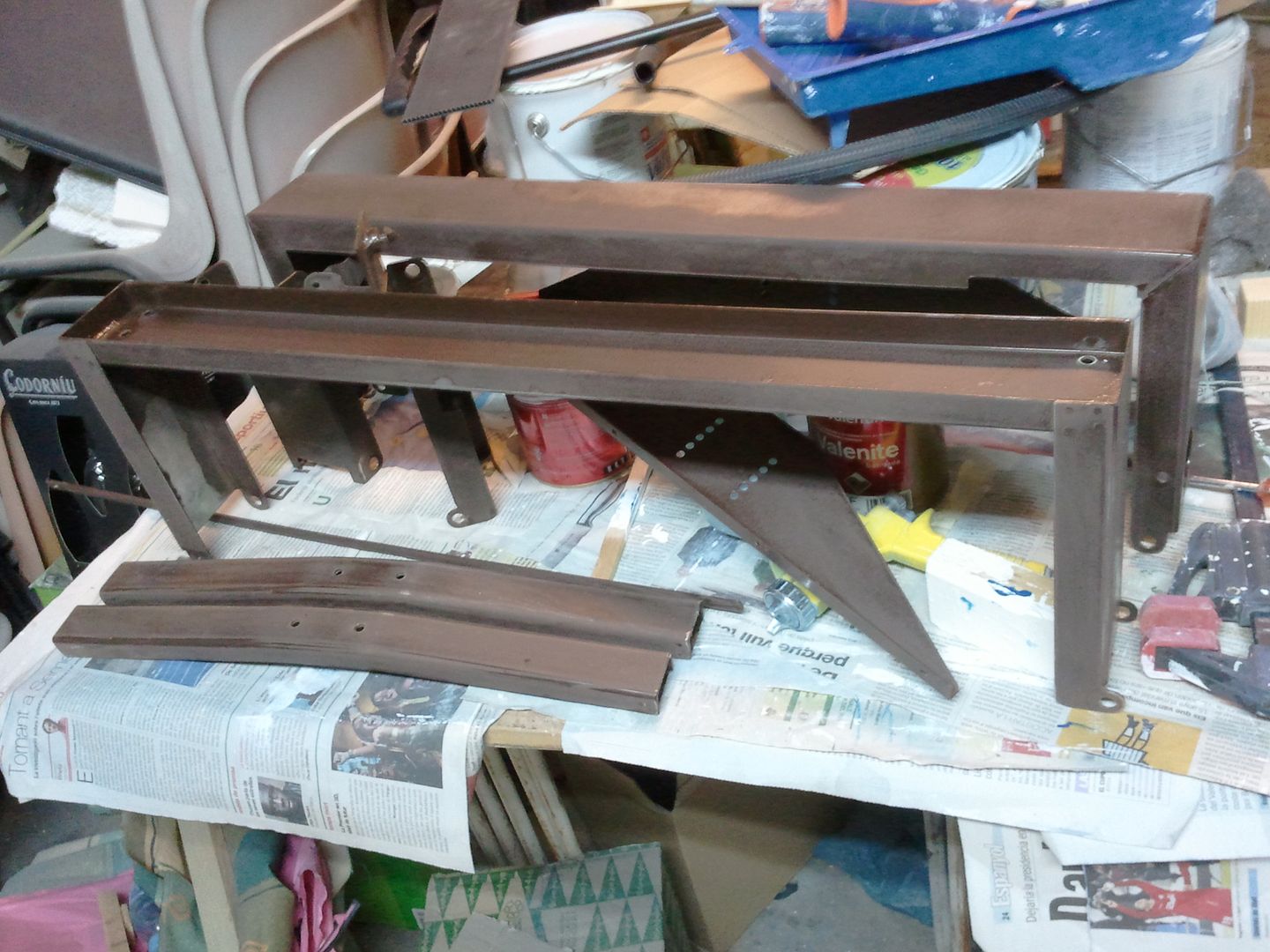 Luego he ligado y limpiado la pata de la mesa del salon.
