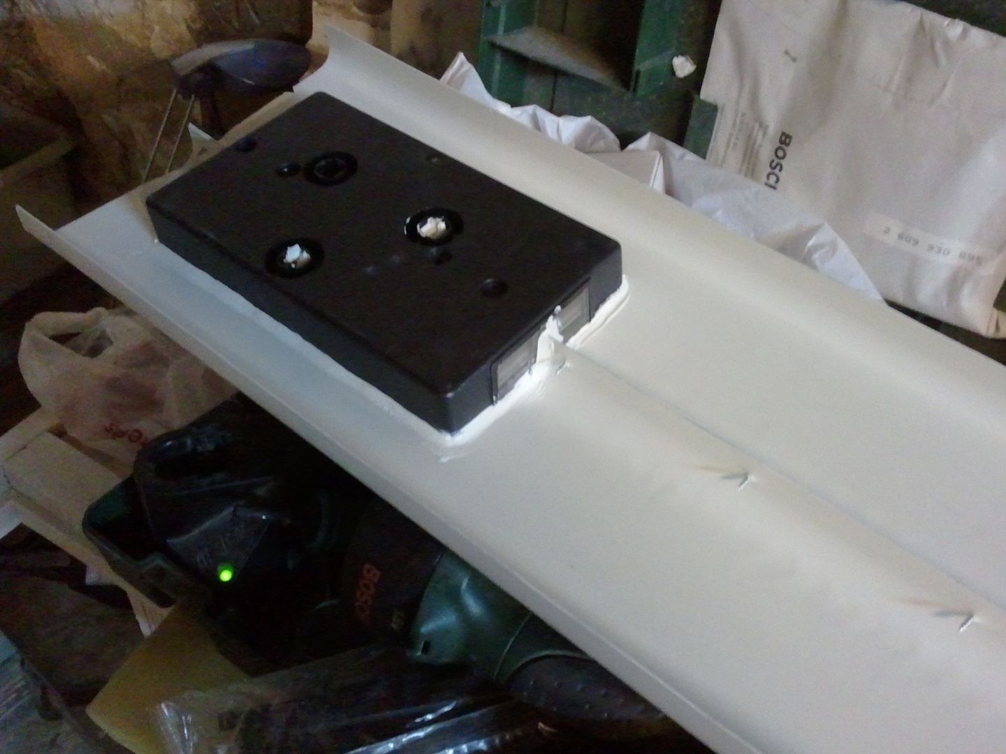 Luego he puesto silicona de exteriores en la union del parachoque. Esto es el relleno de las luces de la matricula.